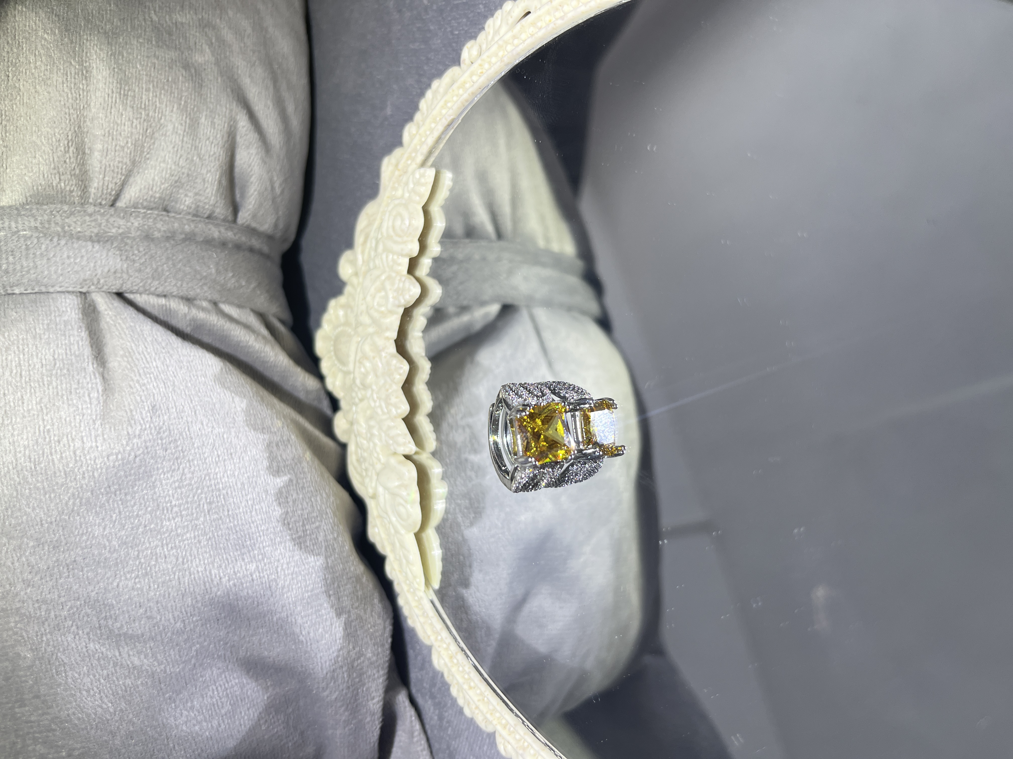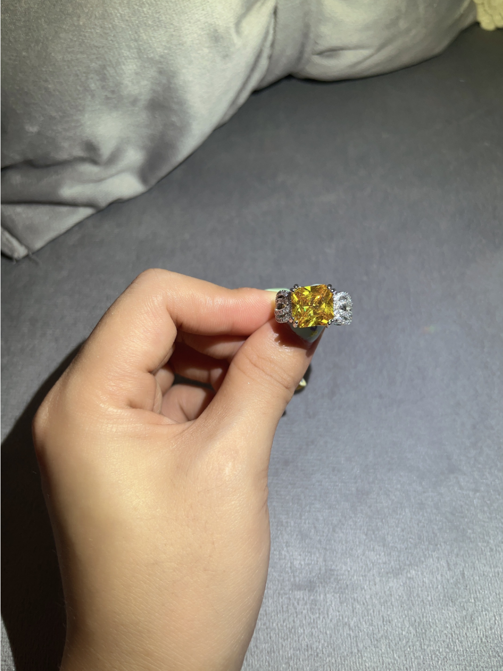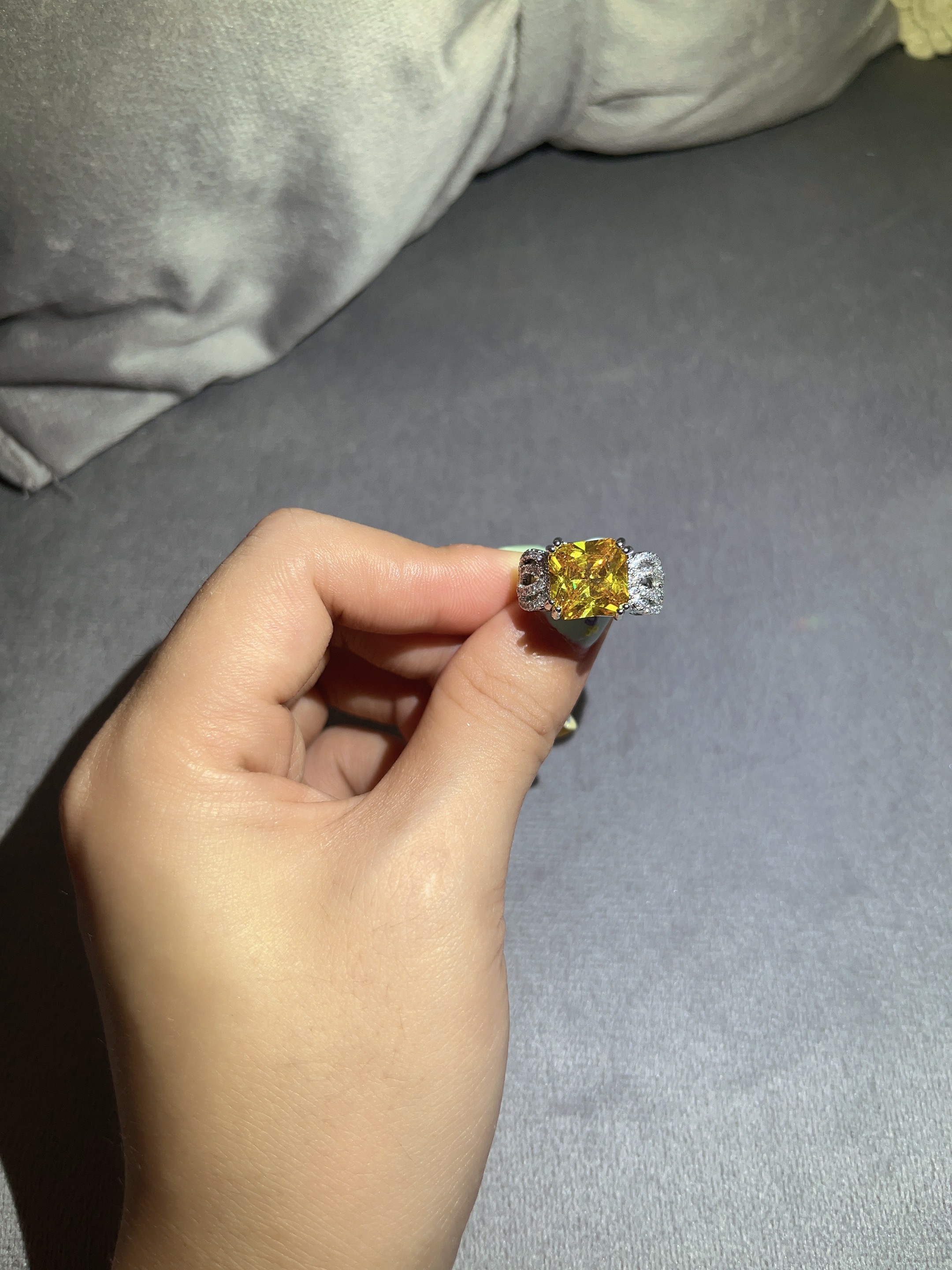 奢华闪耀进口莫桑钻石4克拉黄钻戒指纯银指环时尚婚戒女轻奢小众