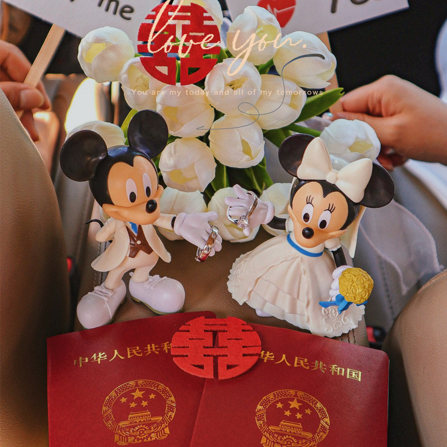 婚纱米奇米妮唐老鸭黛西手办婚庆结婚蛋糕摆件米老鼠公仔玩具模型