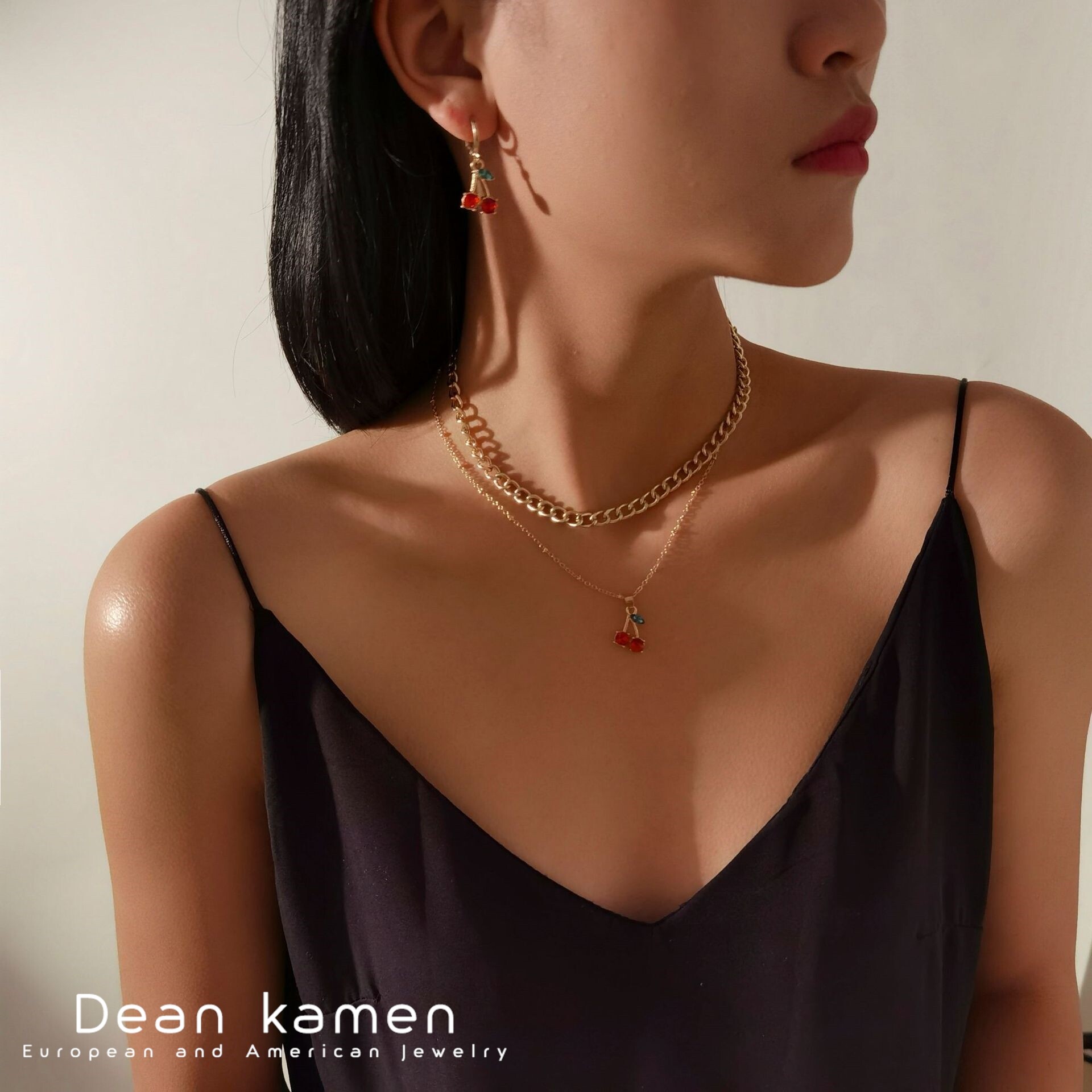 Cherry Necklace Earrings水果女高级感毛衣链吊坠极简风项链耳环