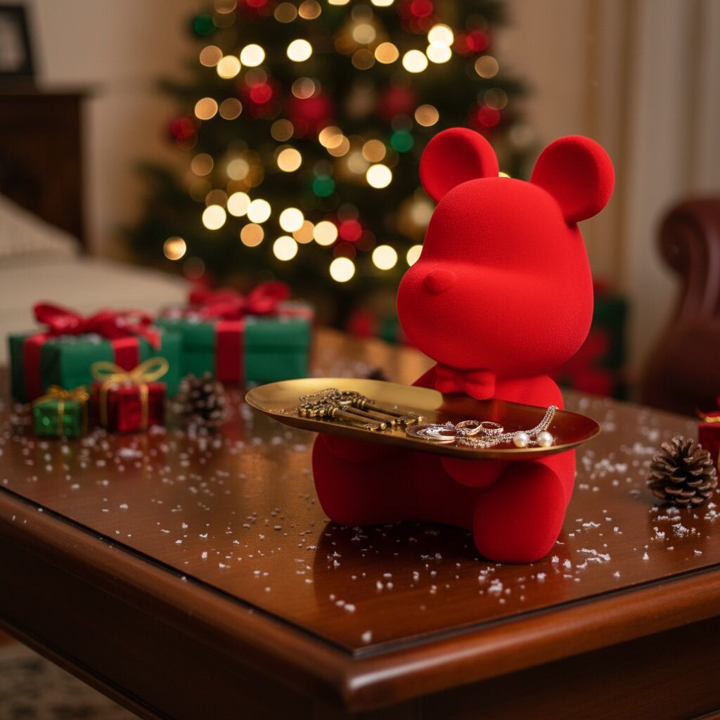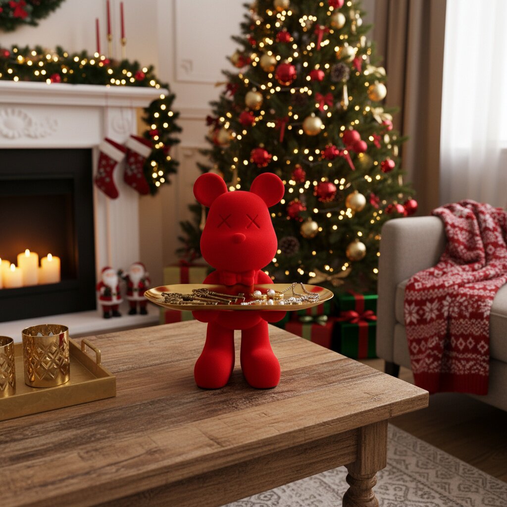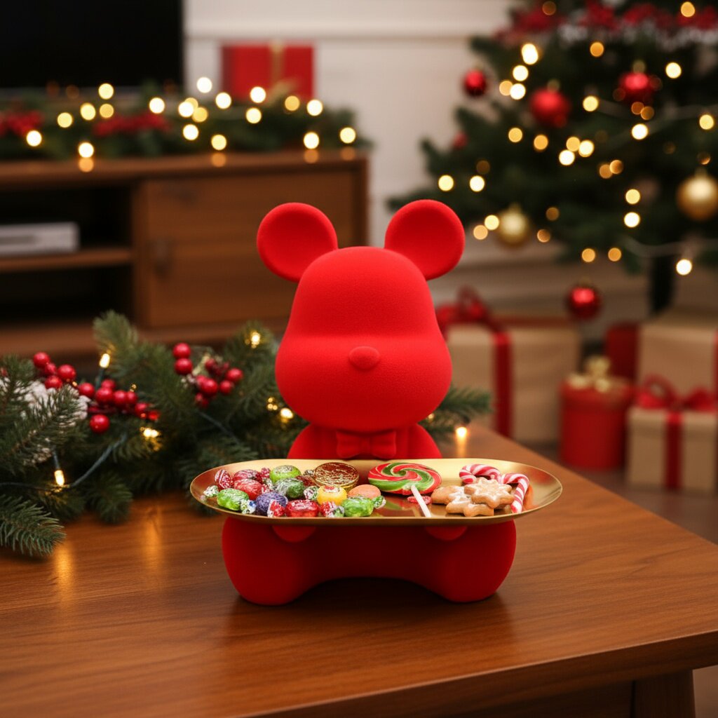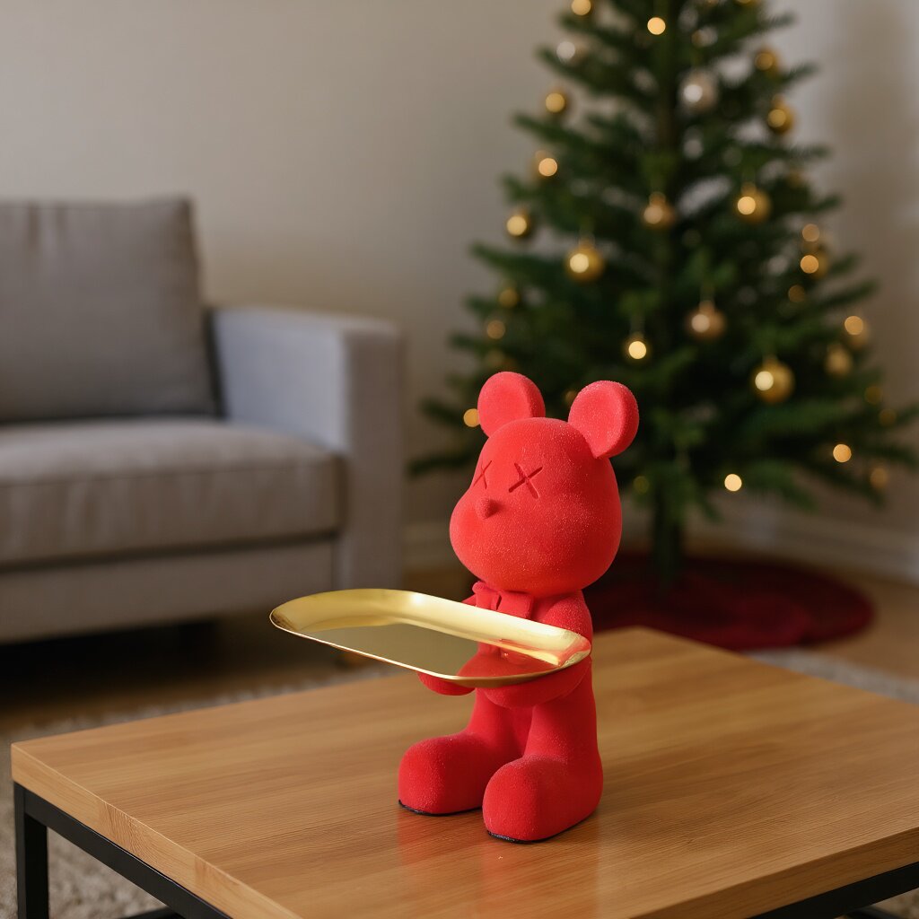 圣诞暴力熊托盘可爱小熊植绒摆件红色掌上托盘装饰摆件潮玩家居
