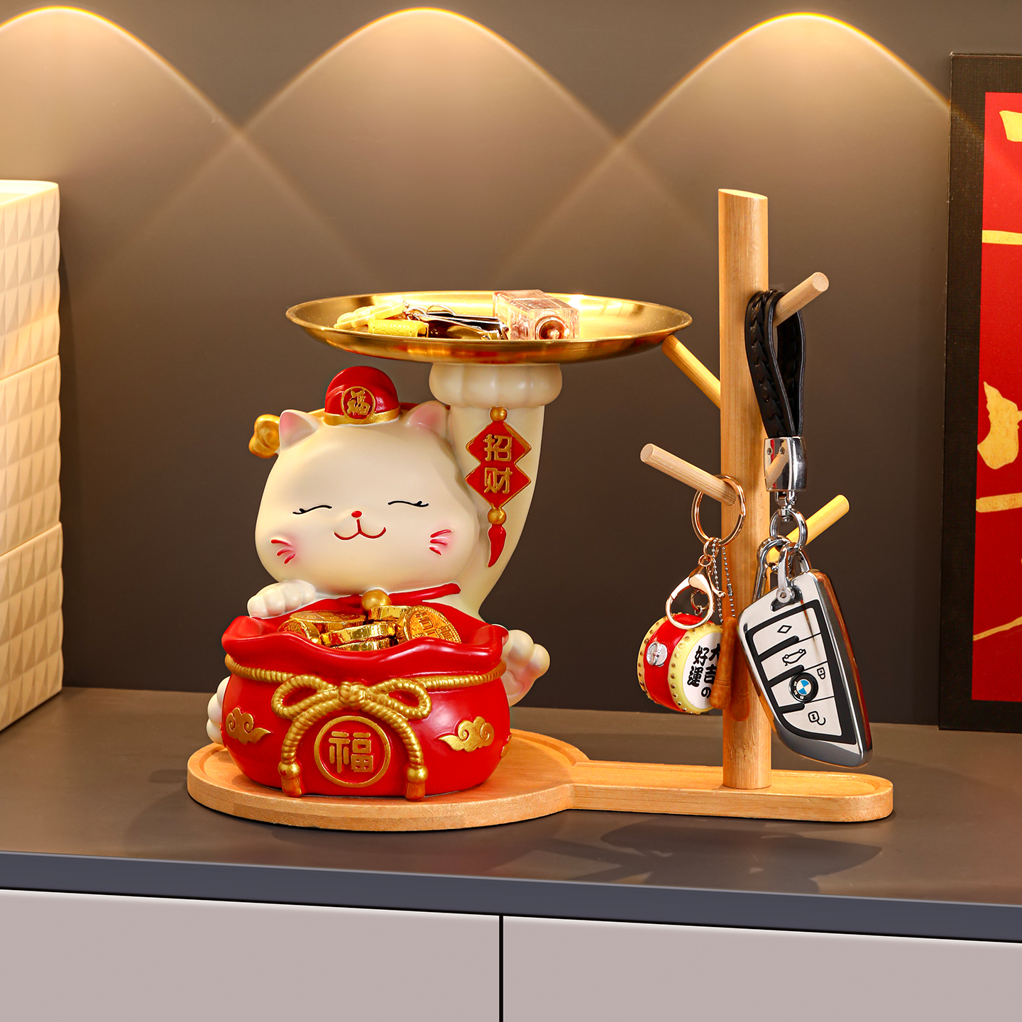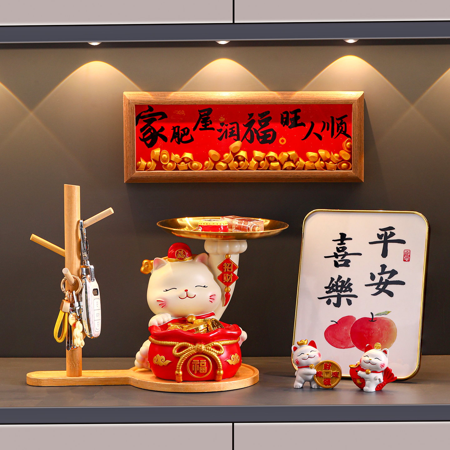 招财猫摆件入户玄关钥匙收纳客厅鞋柜电视柜装饰家居乔迁新居礼物