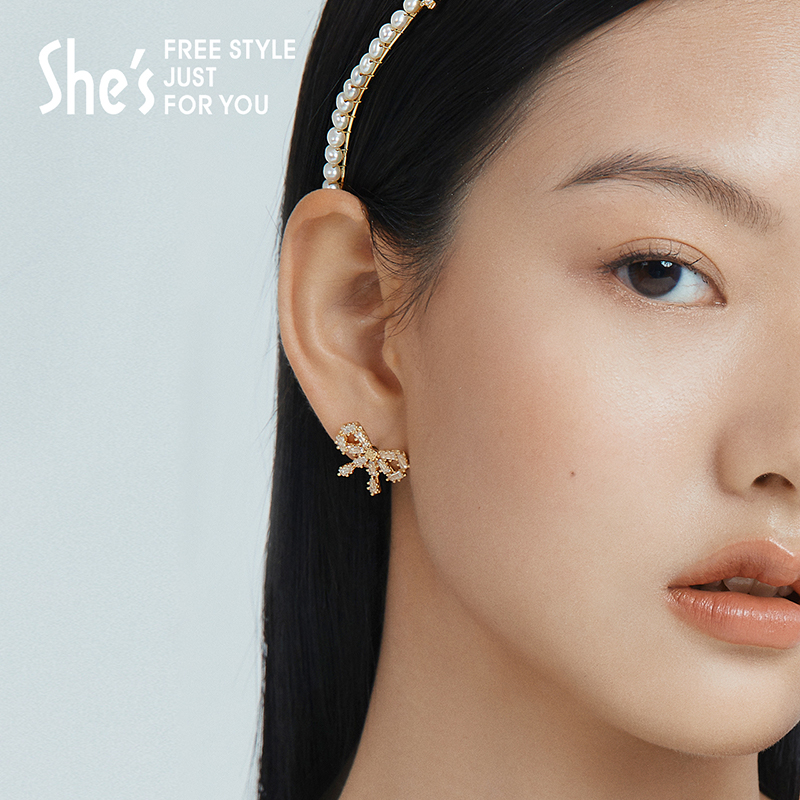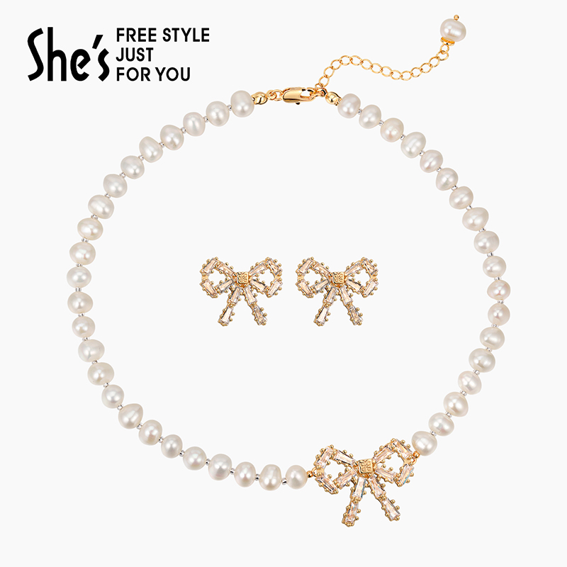 shes茜子陪伴璀璨蝴蝶结轻奢高级感耳环珍珠项链颈链套装节日礼物