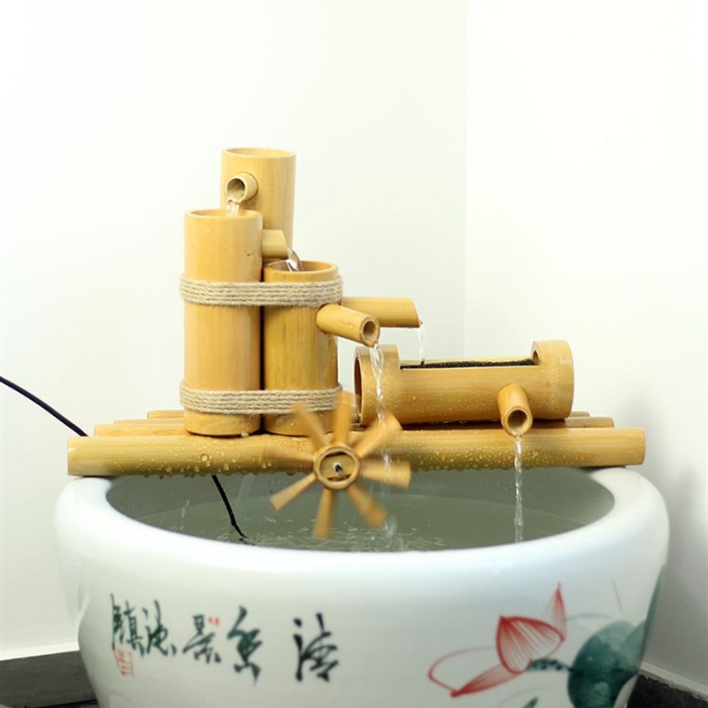 流水石槽竹子过滤器摆件 鱼缸造景 水轮水车加湿器 鱼缸流水