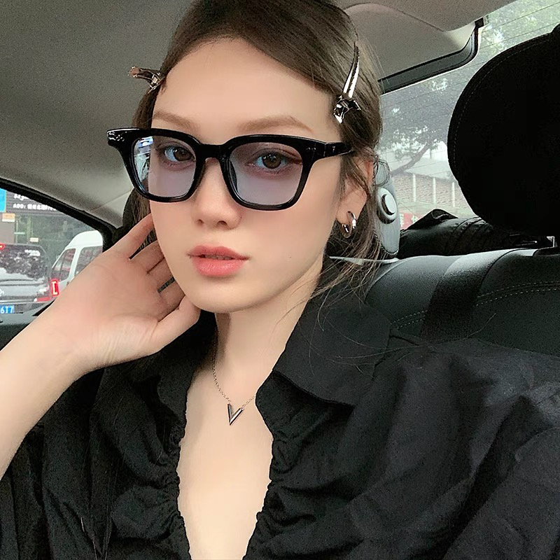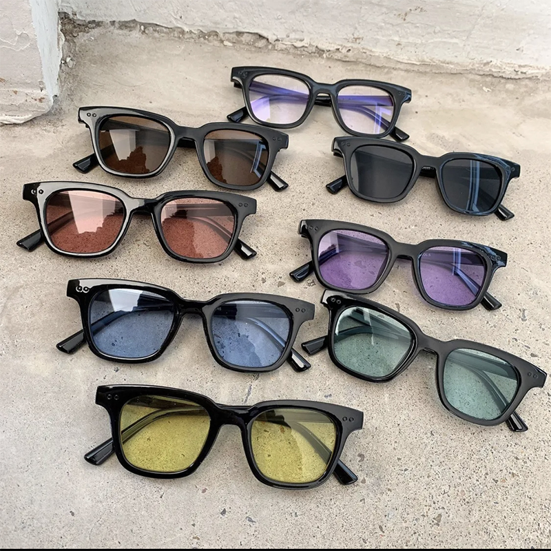 日系复古黑框长方形小墨镜眼睛潮牌男太阳镜蓝色嘻哈高级感vitage