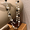 多层珍珠项链女时尚长款黑白拼色颈链复古高级感毛衣链配饰饰品