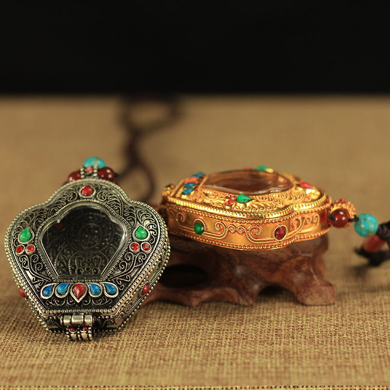藏传尼泊尔嘎乌盒噶乌盒铜 十相自在吊坠结缘甘露丸楞严咒包邮