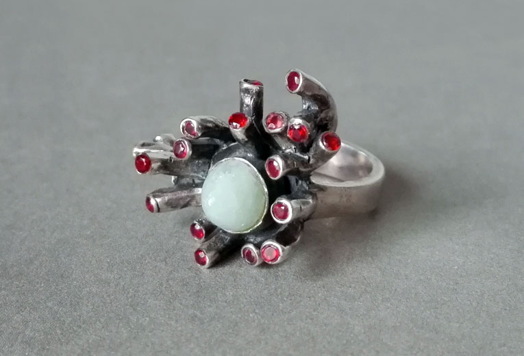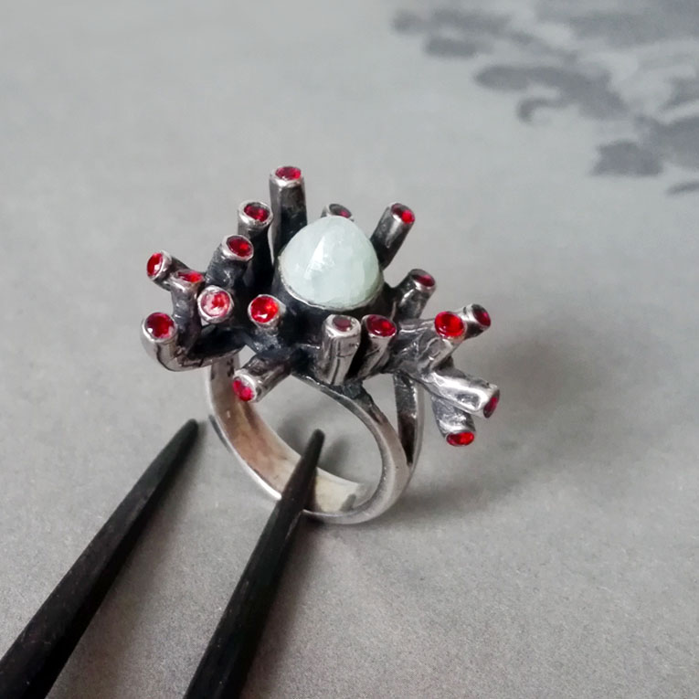 欧美设计师925纯银个性独特蛇纹宝石石榴石树型食指中指戒指女
