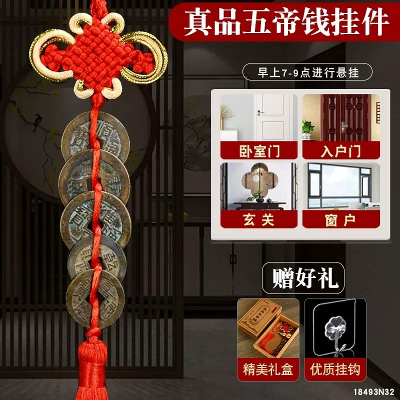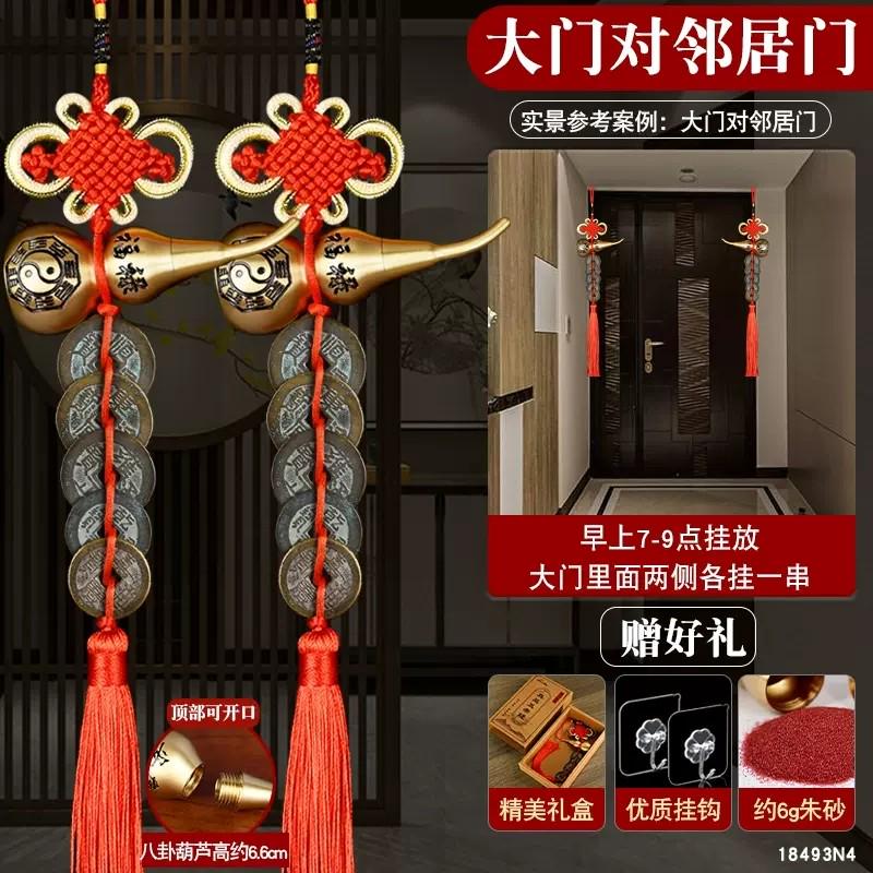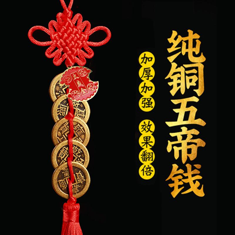 纯铜五帝钱真品铜钱化解入户门对门吉祥结铜葫芦挂件压门槛五吊钱