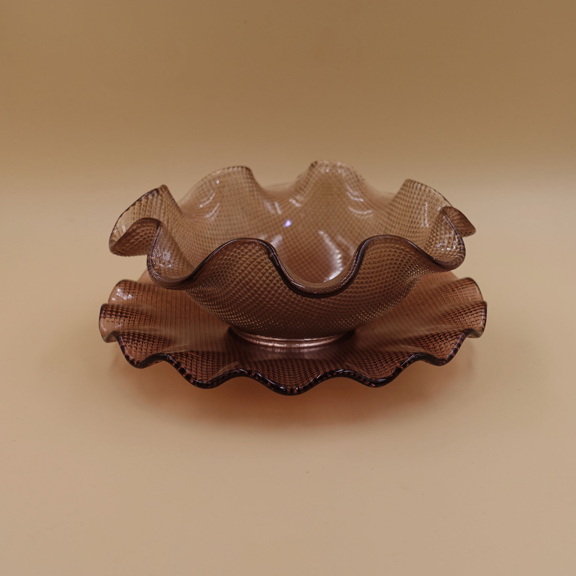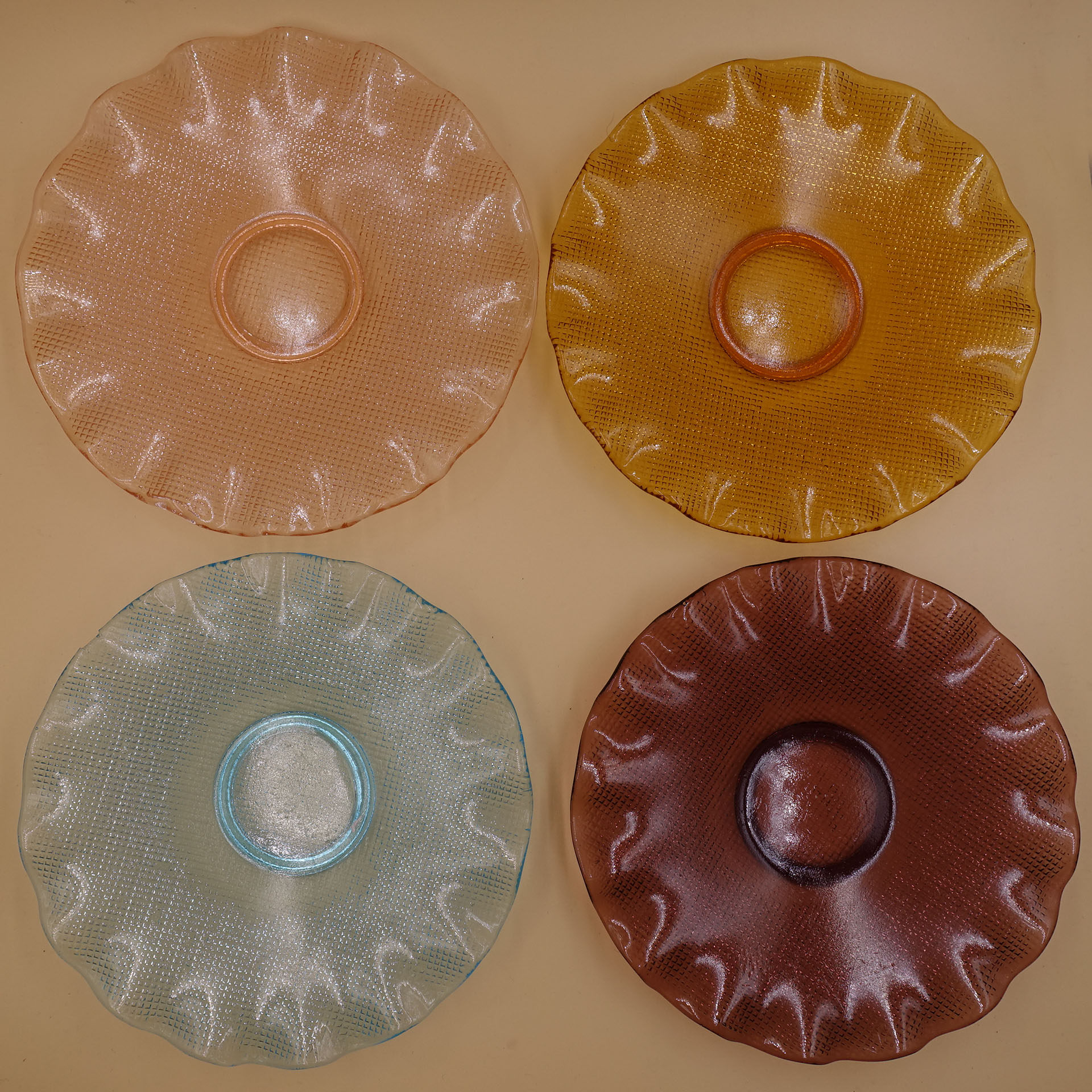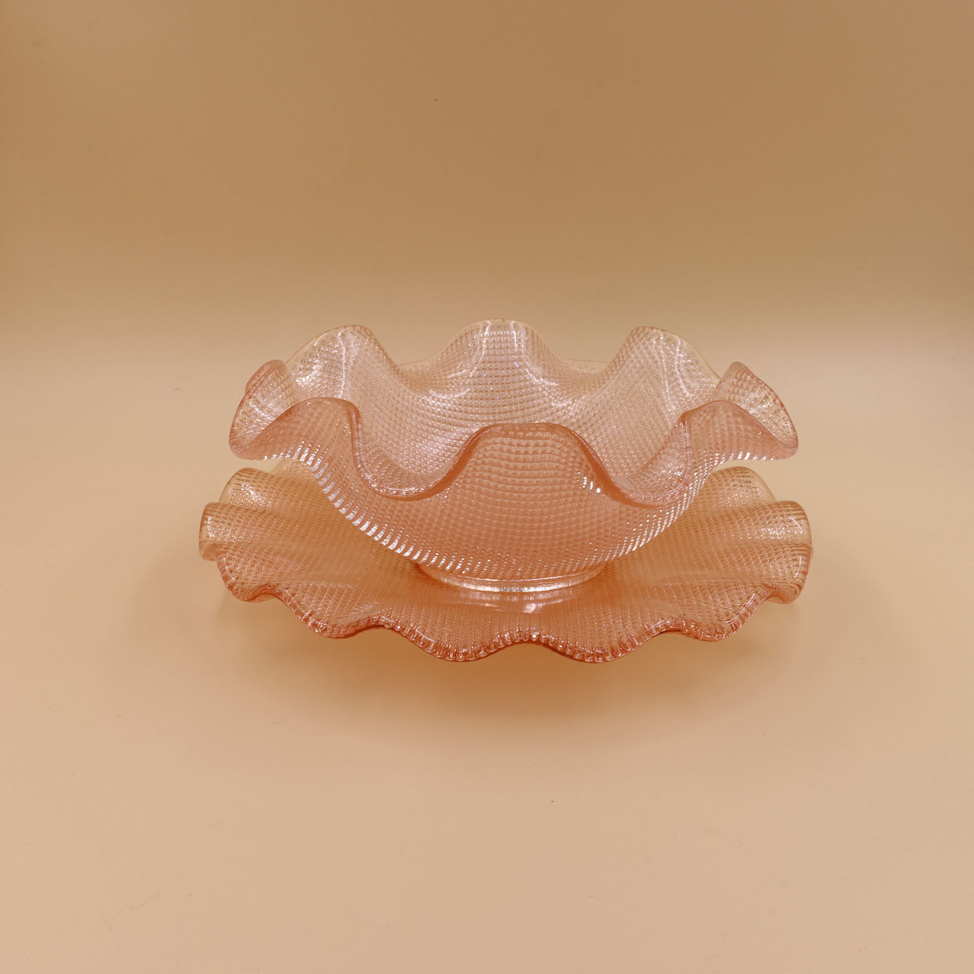 西洋古董40-50年代玻璃碗套装和盘子彩色粉色紫色黄色拍摄道具