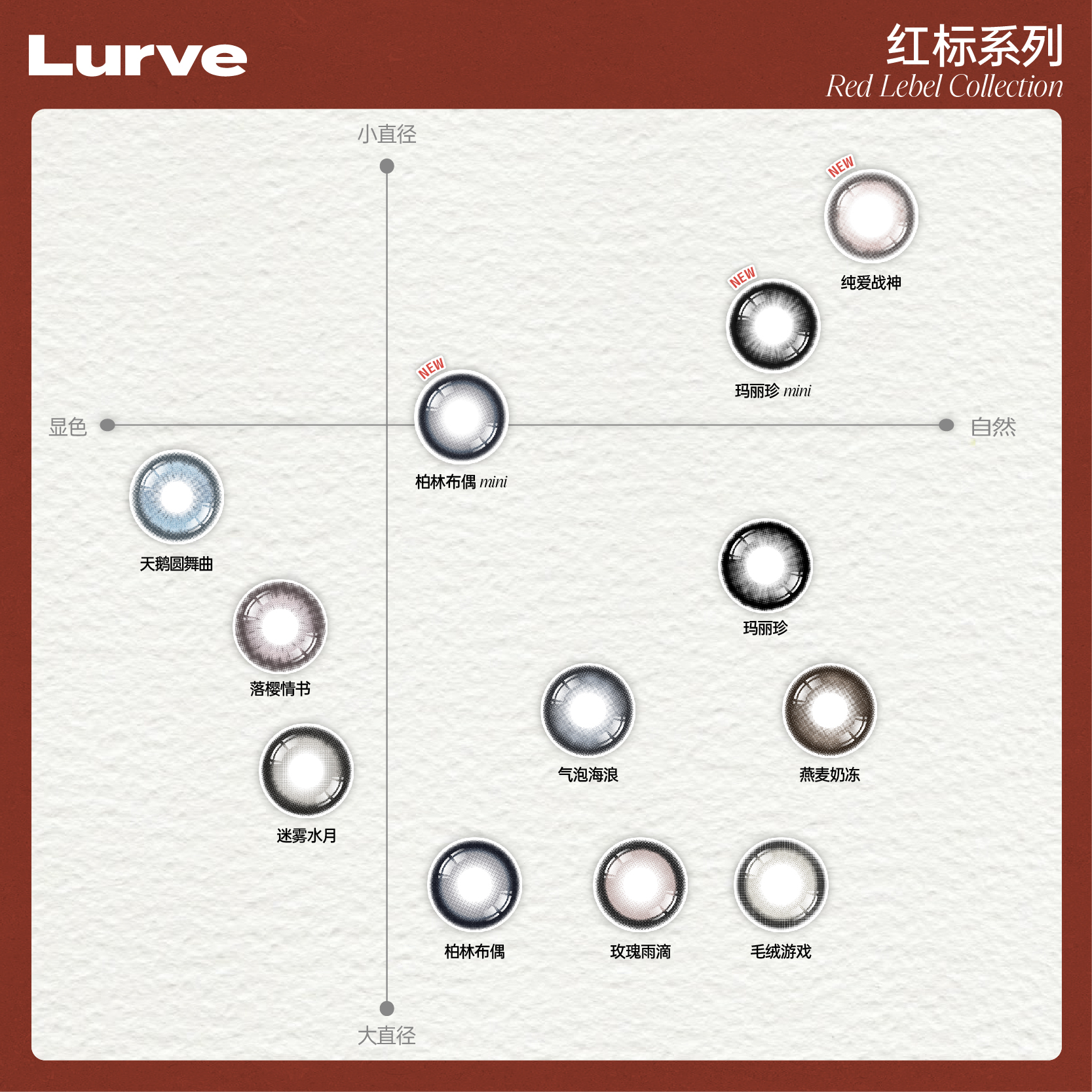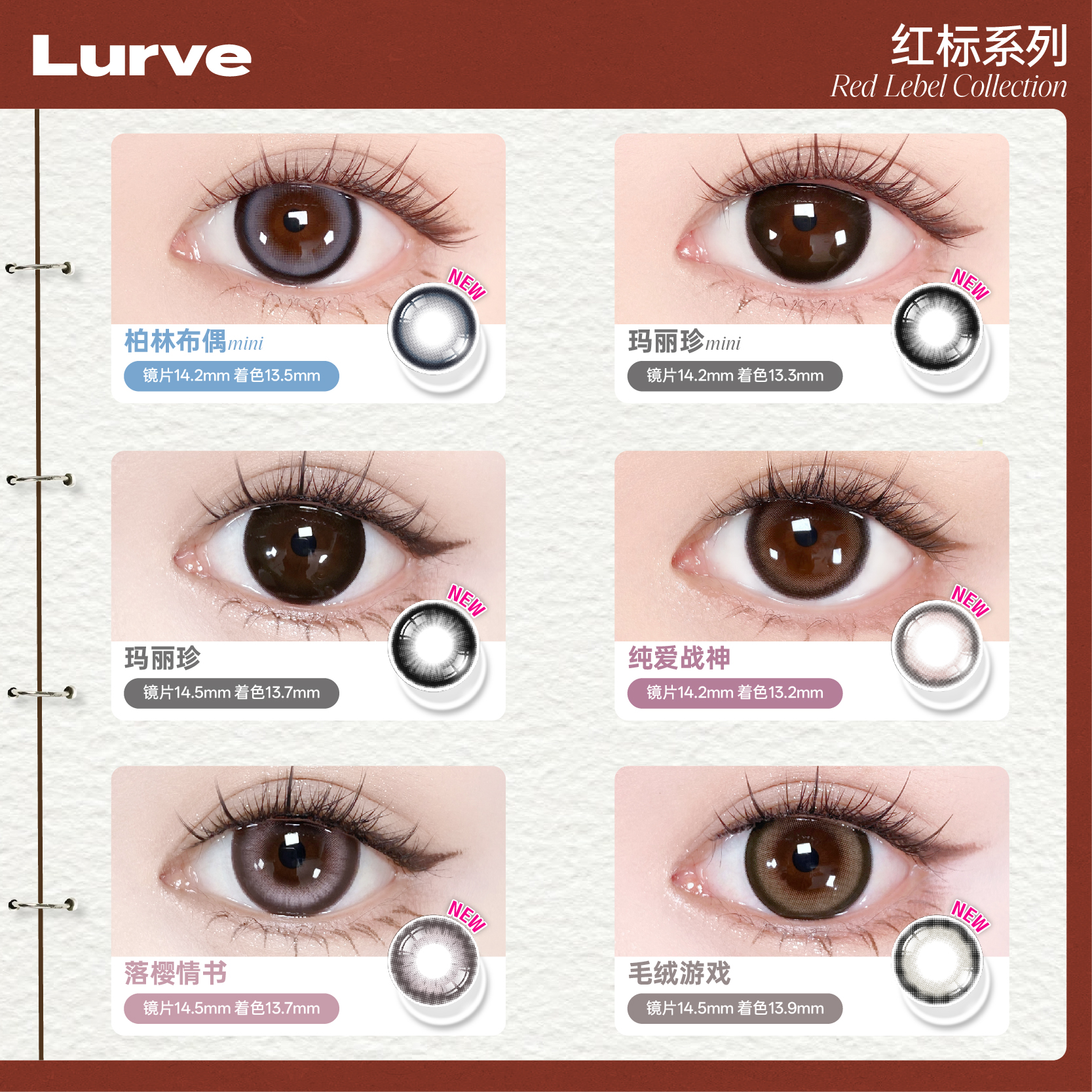 Lurve美瞳半年抛玛丽珍大直径红标系列彩色隐形眼镜1片装*2自然