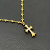 s925纯银克罗伈22K金色十字架伸缩调节一体项链男女个性十字花链