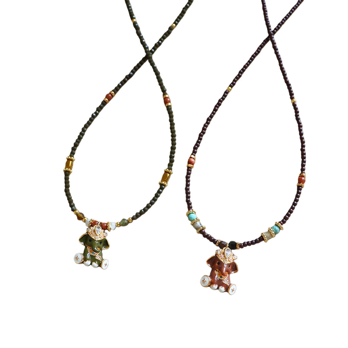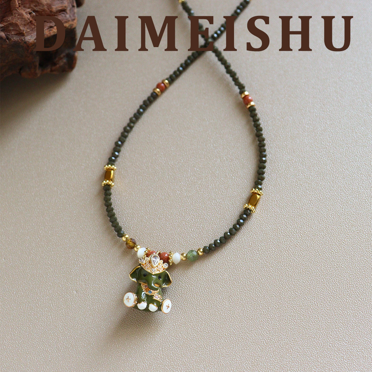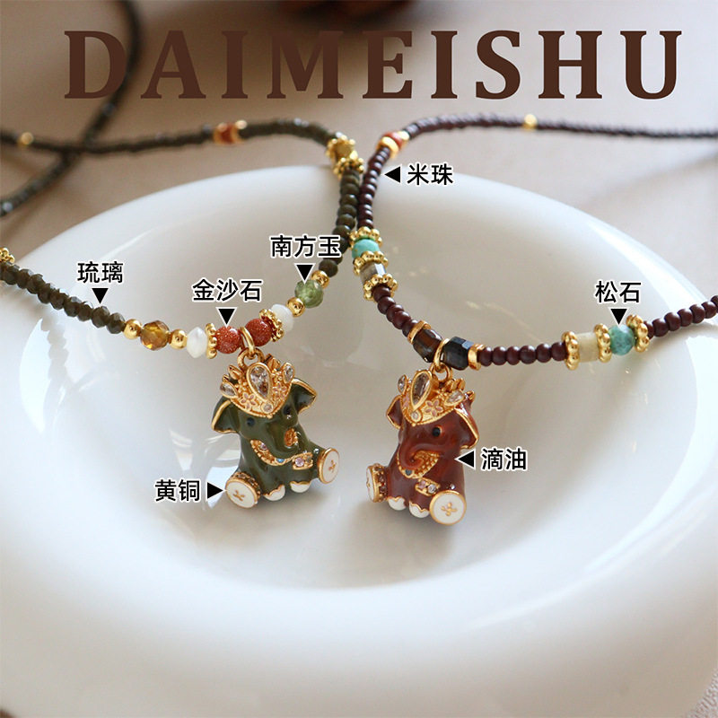 原创秋冬复古红色滴油珐琅立体小象毛衣链轻奢高级感百搭长项链女