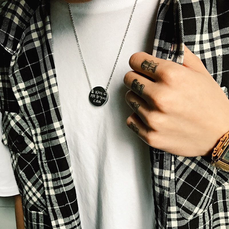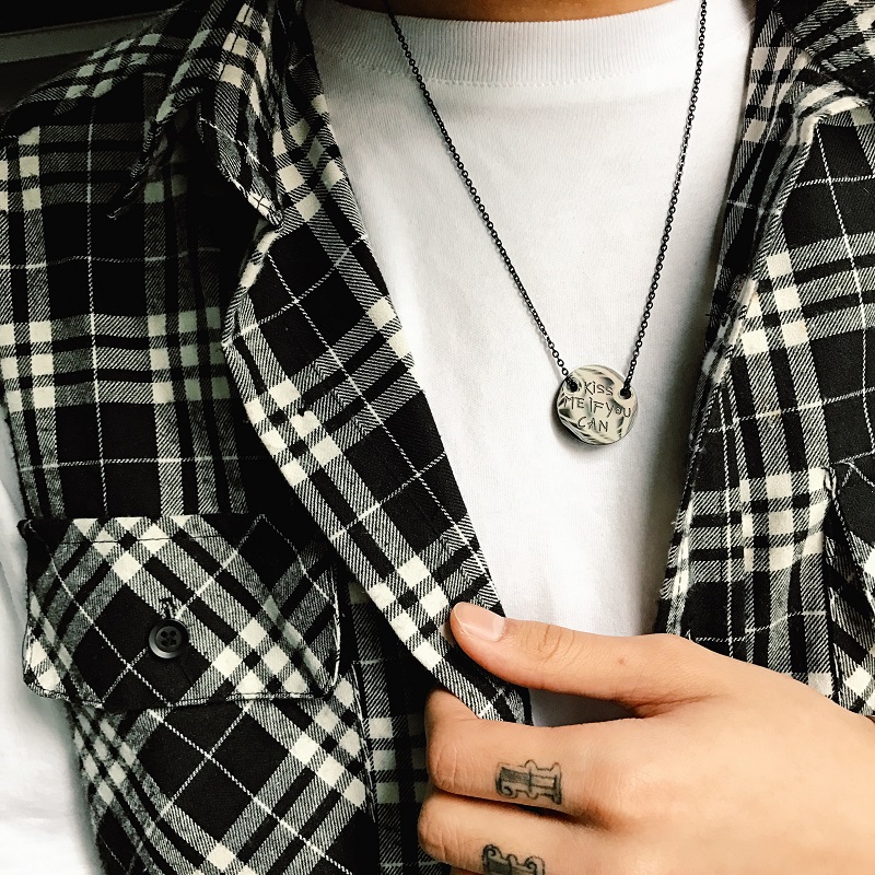 KORKEN欧美潮牌钛钢小圆牌项链清冷简约ins男女中性毛衣链锁骨链