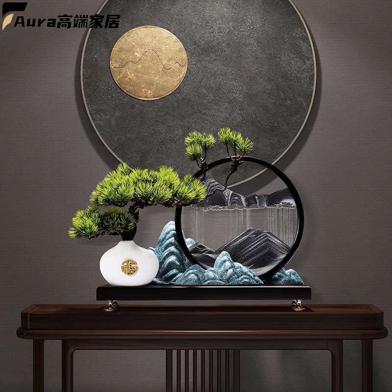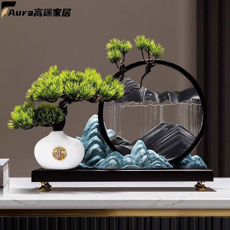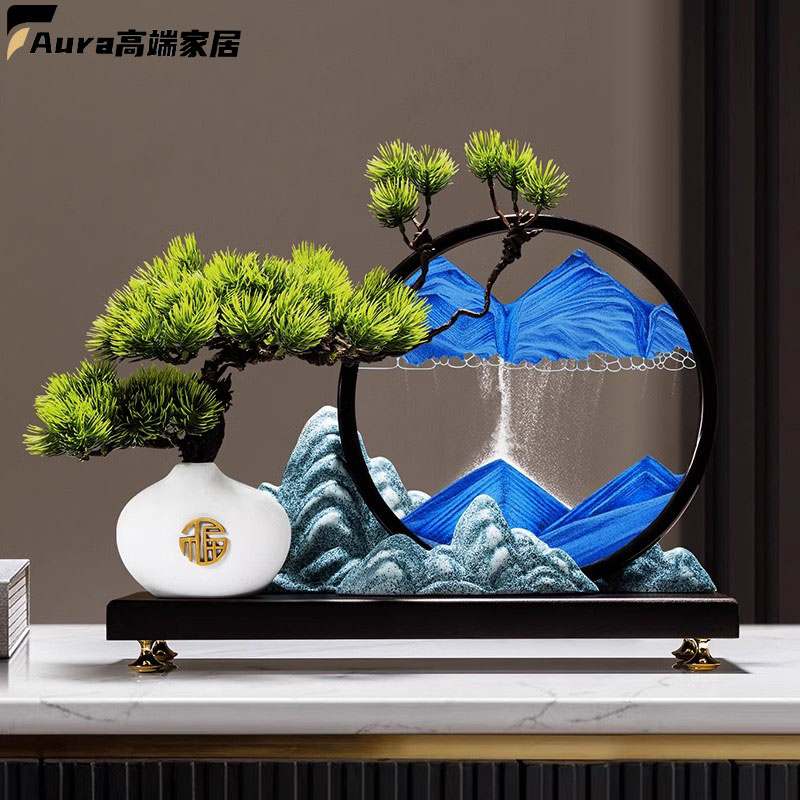 新中式迎客松摆件创意山水流沙画沙漏客厅玄关办公室高档装饰品