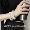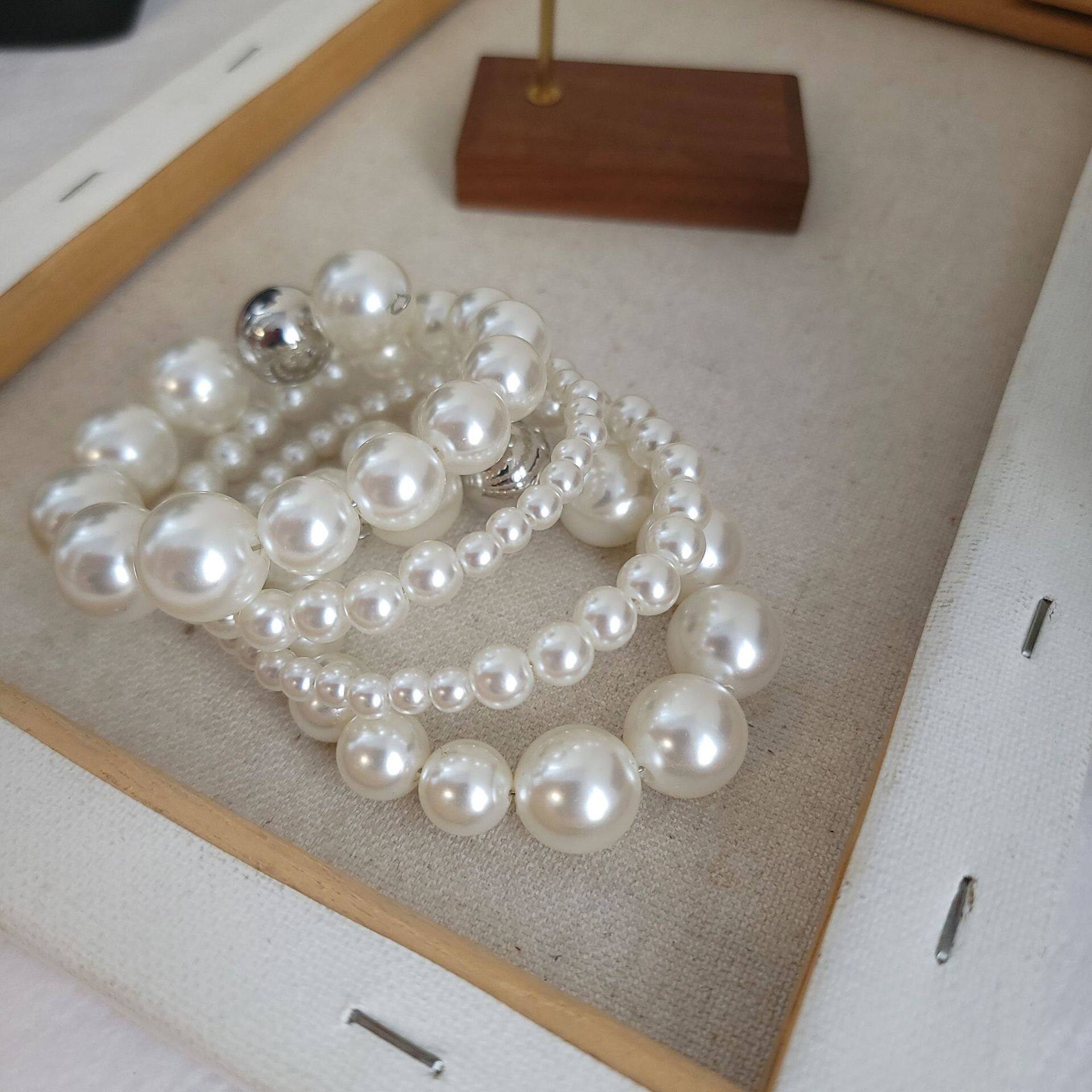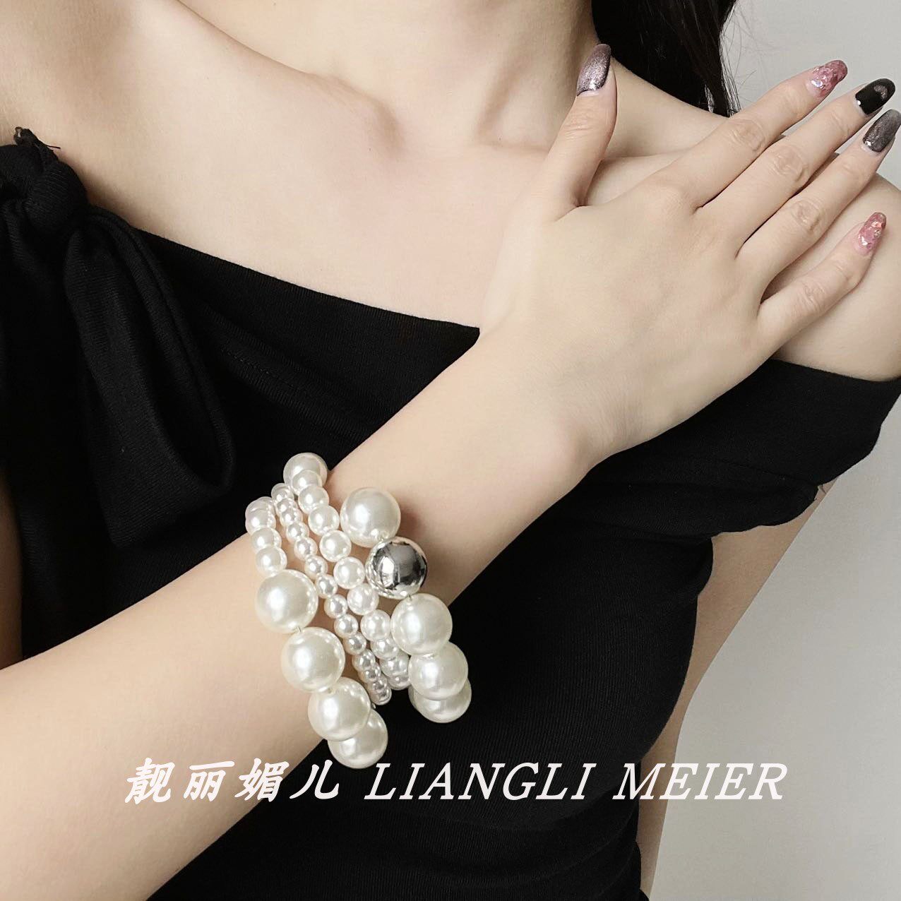可调节复古简约多层环绕仿珍珠手环手链女串珠金属球高级感手镯