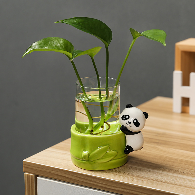 可爱陶瓷熊猫办公室桌面装饰小摆件水培器皿家居客厅玄关花瓶装饰