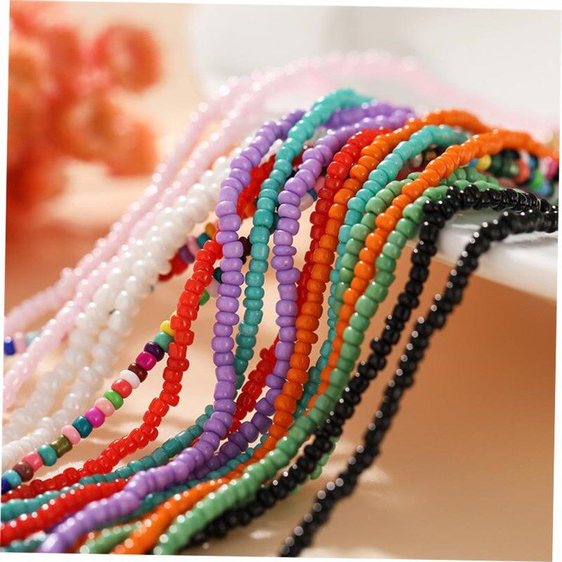 Colored rice Bead Necklace women短款颈链choker 彩色米珠项链