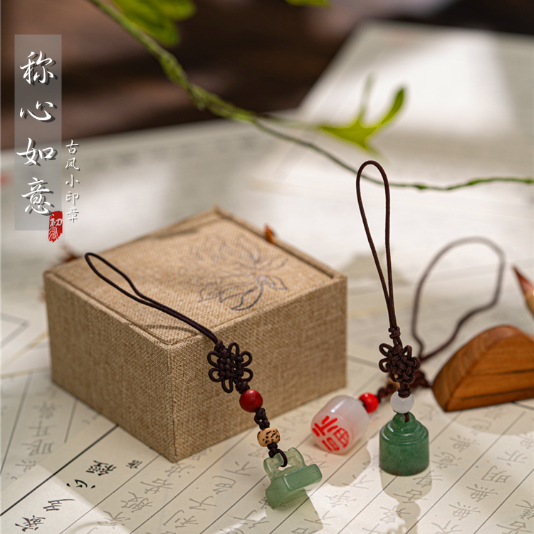 袖珍印章刻字吊坠白玉髓挂坠中国风手机钥匙链男女情侣定制定情信