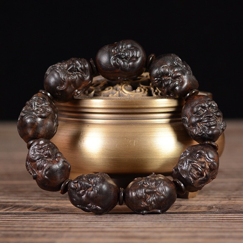 沉贵宝精雕十八罗汉手串沉水香木老料佛珠文玩男女款手链