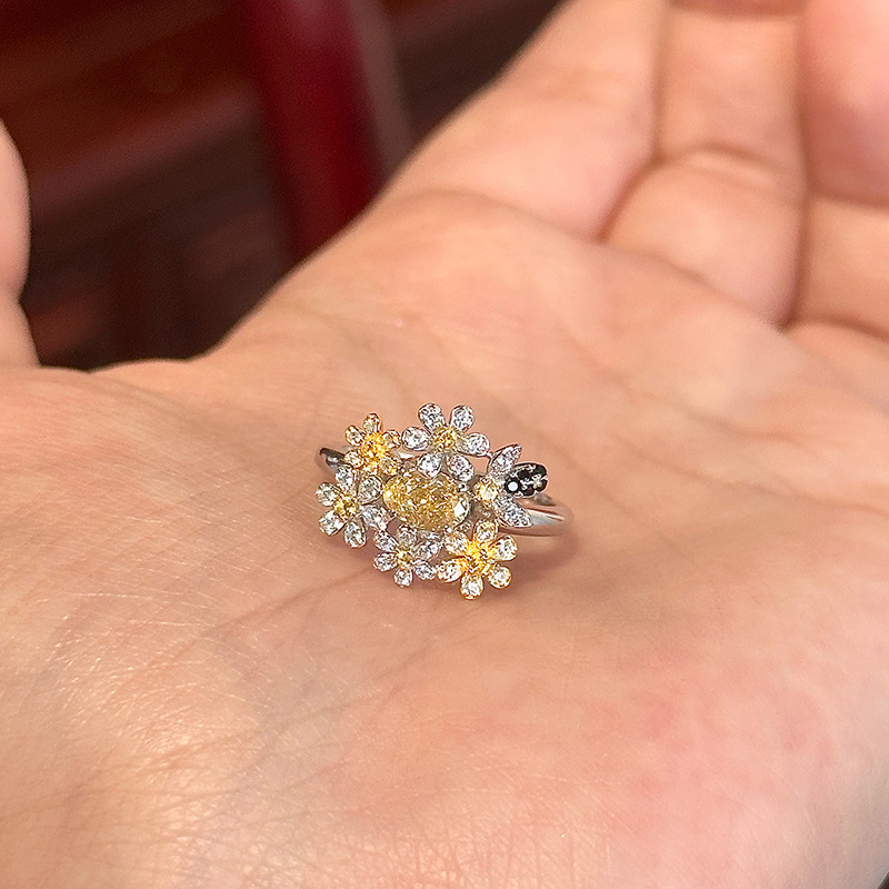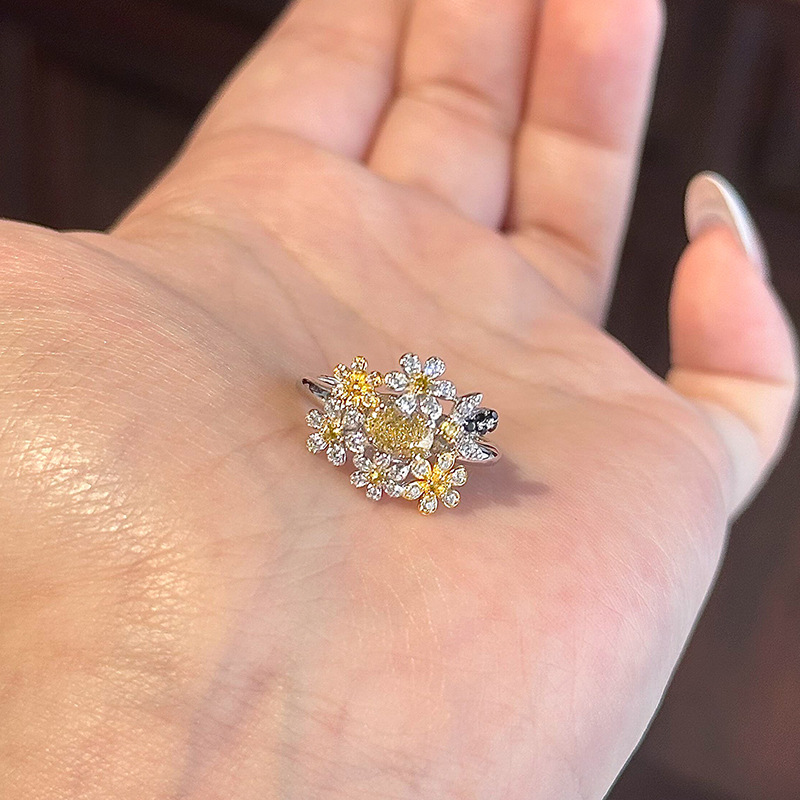 小红书爆款黄钻小繁花戒指轻奢高级感开口食指戒指环精致一件代发