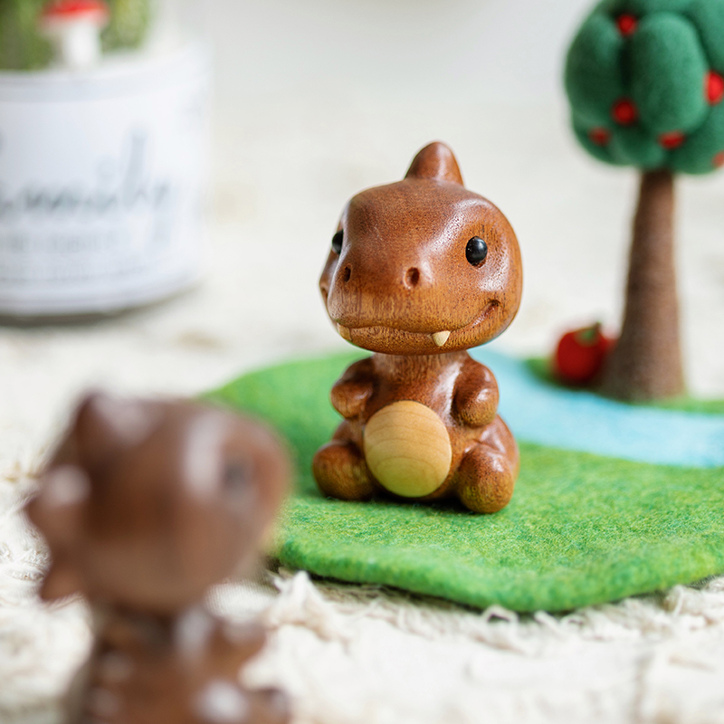摇头小恐龙车载摆件/可爱卡恐龙实木桌面车载装饰摆件送朋友