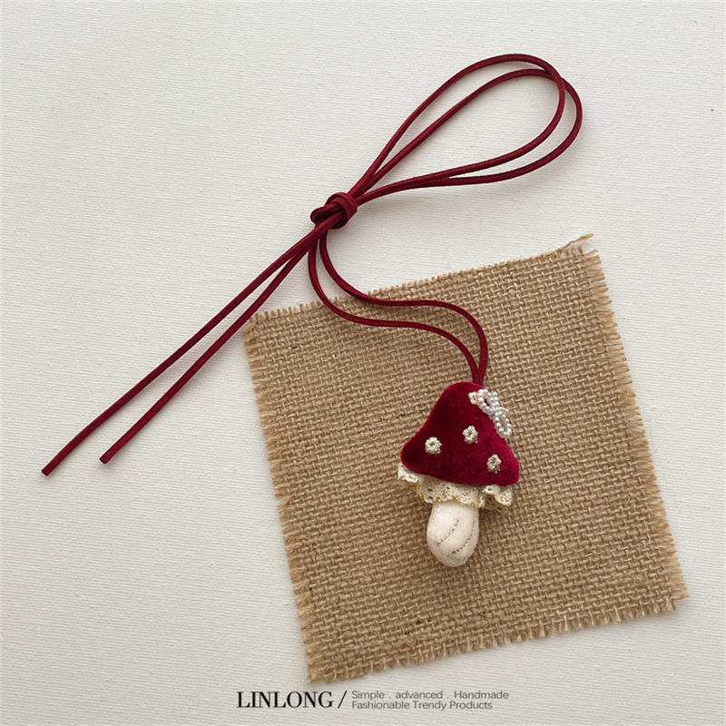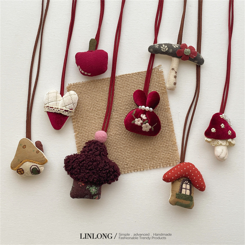 2件包邮韩国新款彩色布艺充棉蘑菇树项链卡通可爱百搭儿童毛衣链