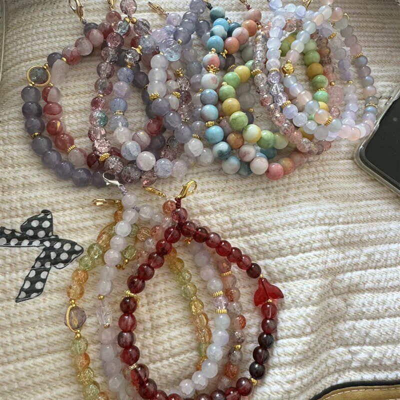 文玩玉米成品手机挂链diy挂绳手把件挂男女水晶流X苏双珠链独款