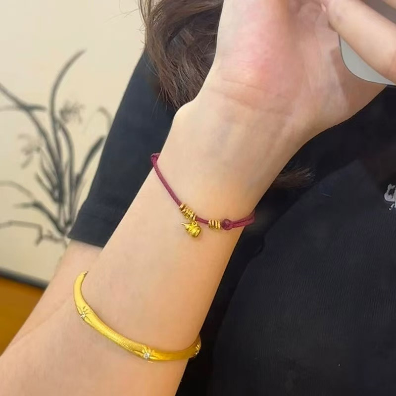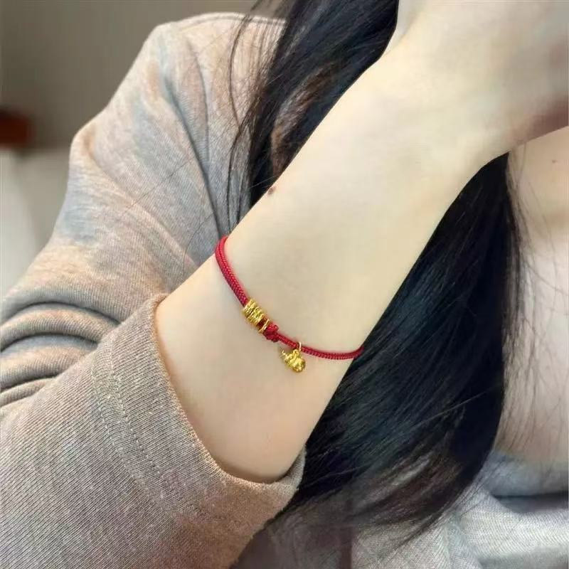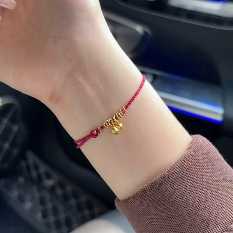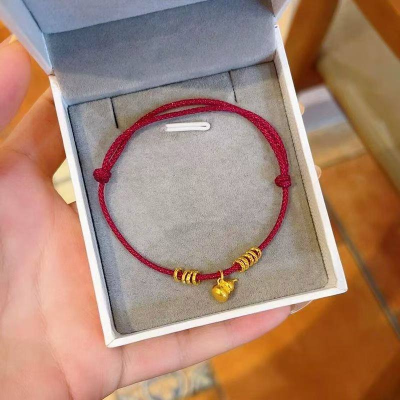 金店同款沙金红绳手链女镀金葫芦盘缠本命年红绳手绳可调节手串