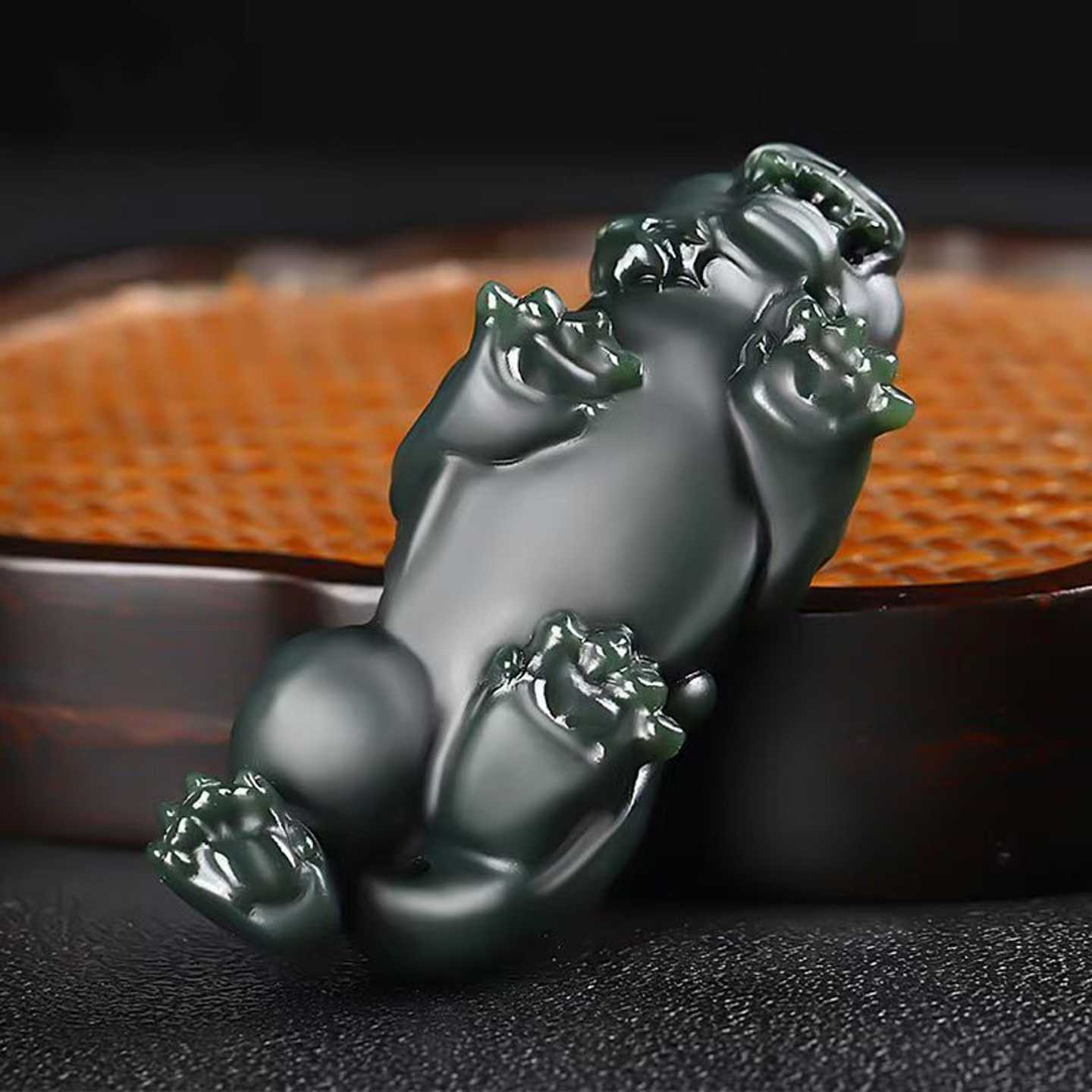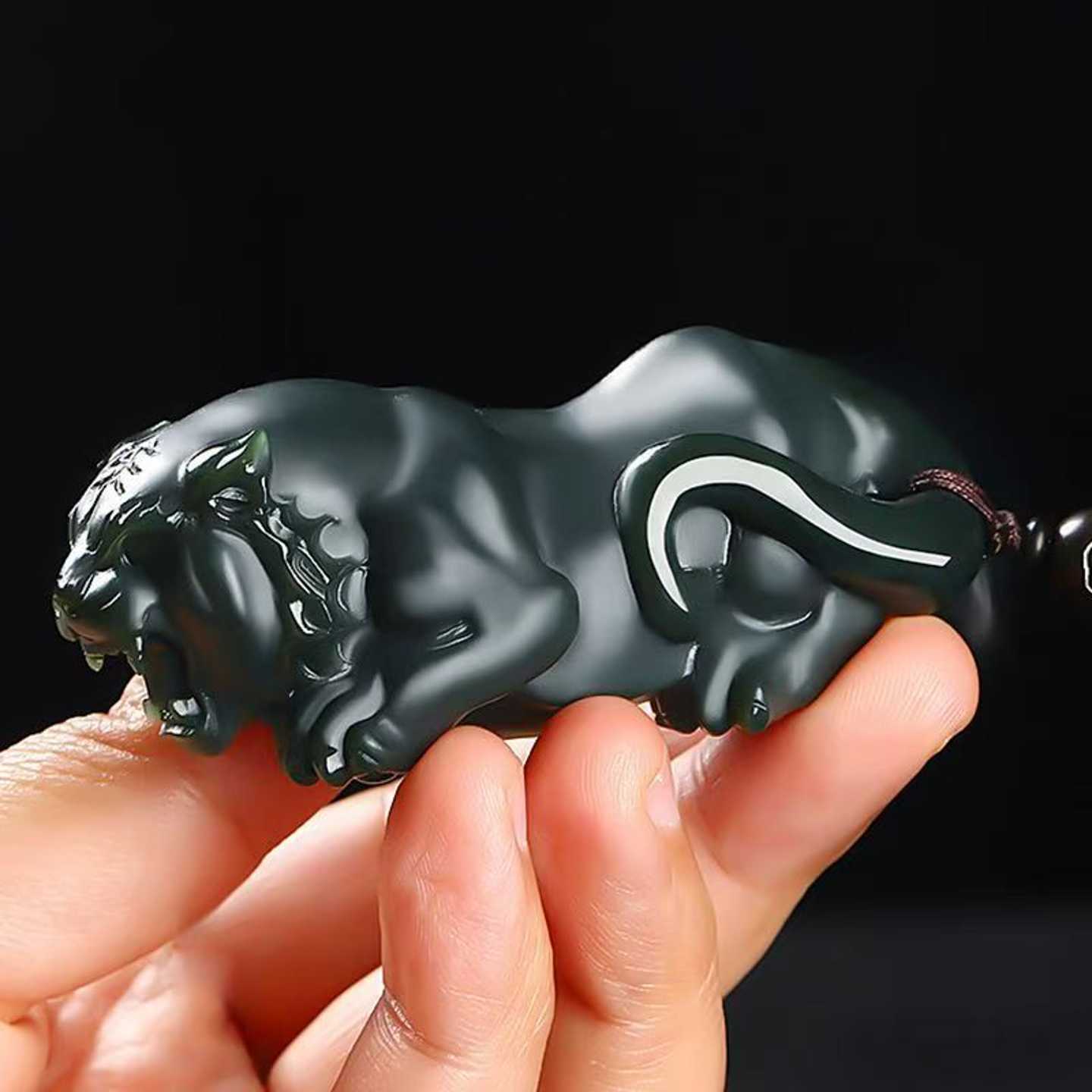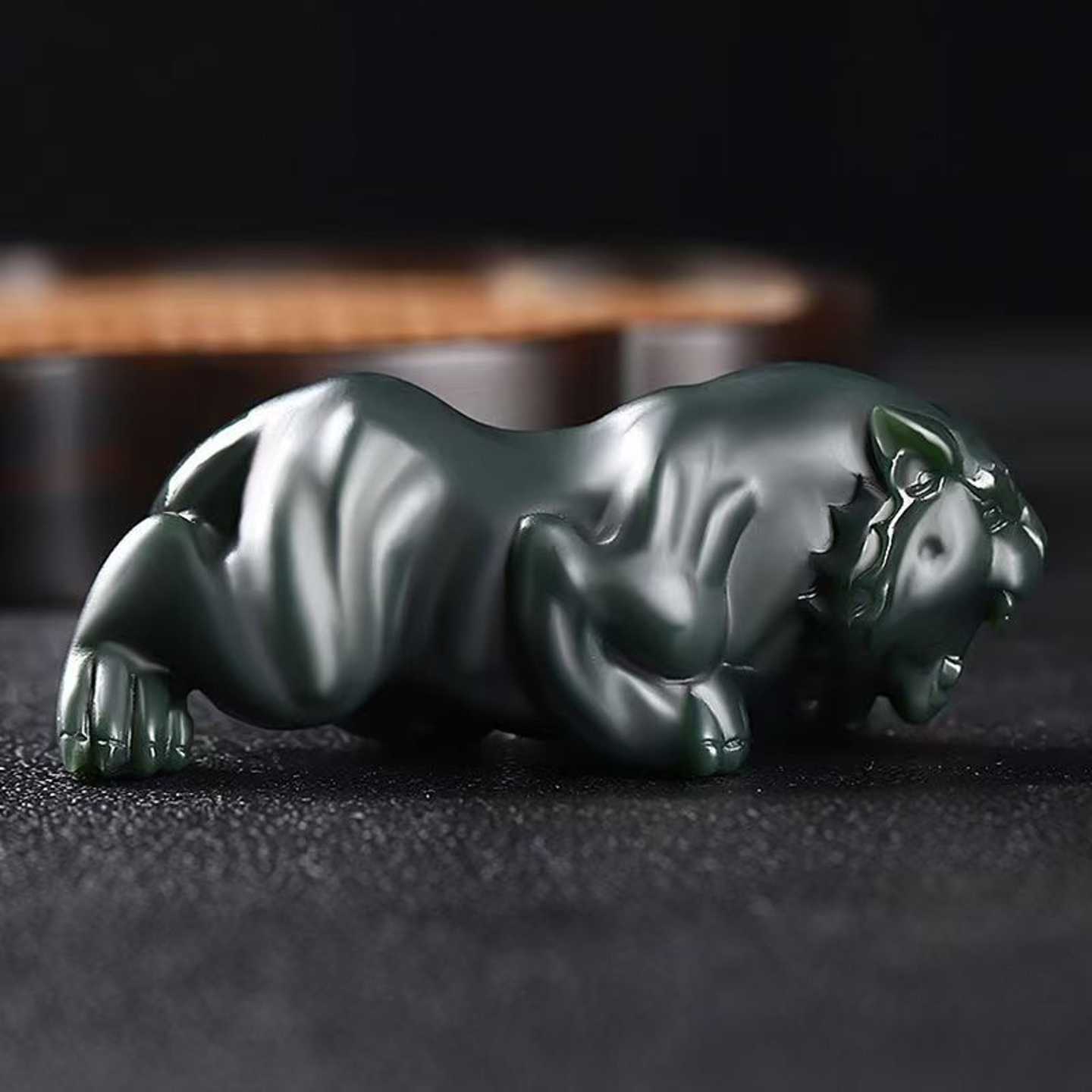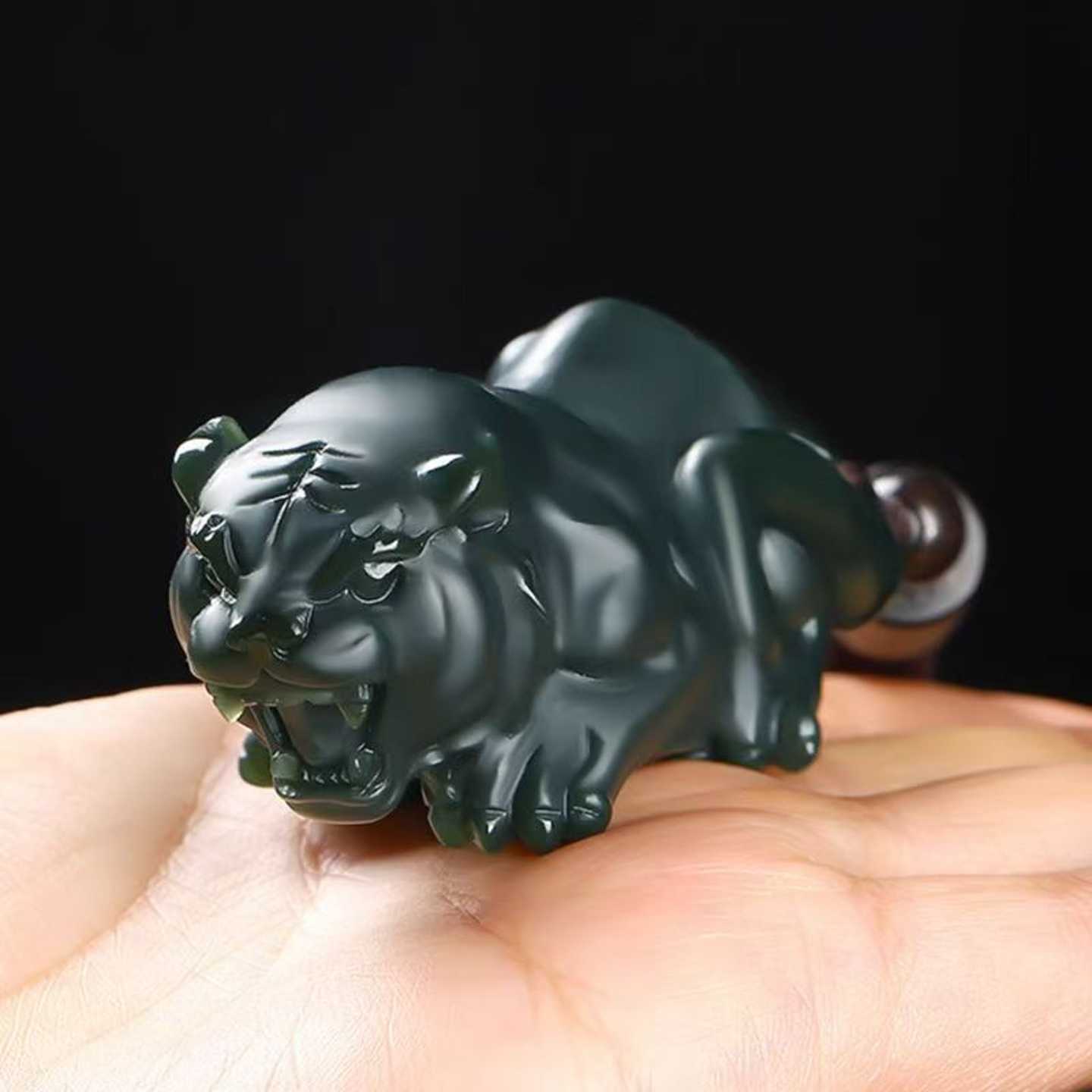 新疆和田玉老虎手把件青玉生肖虎把玩件男女款虎虎生威把件带证书