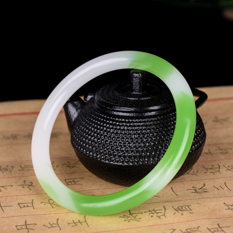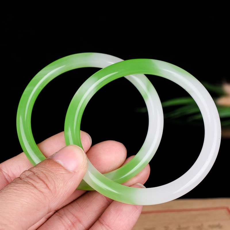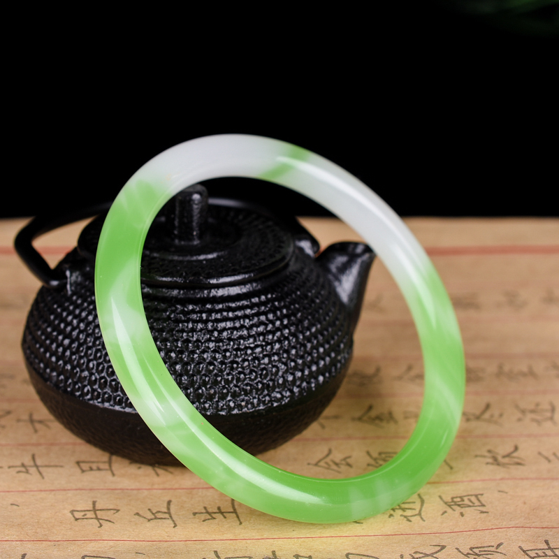 青峰玉业新疆女款玉手镯 冰糯种翡翠浅绿少女细圆条玉石镯子阳绿