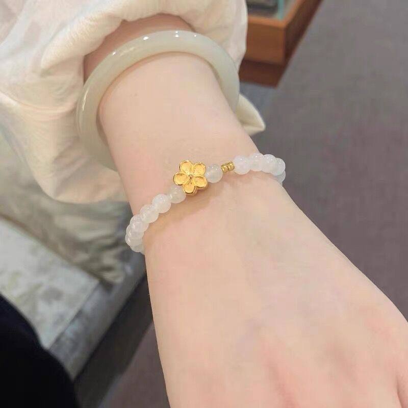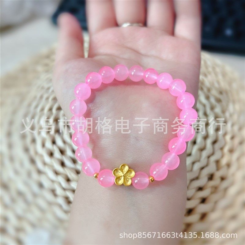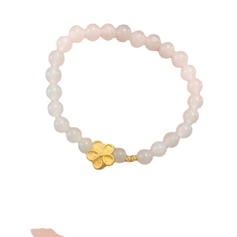 新款镀金小桃花手錬手串仿白玛瑙粉晶金珠串珠转运珠闺蜜生日礼物