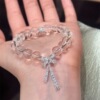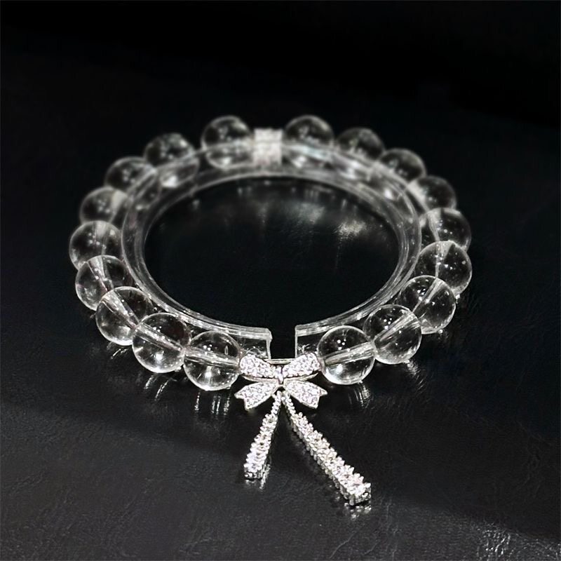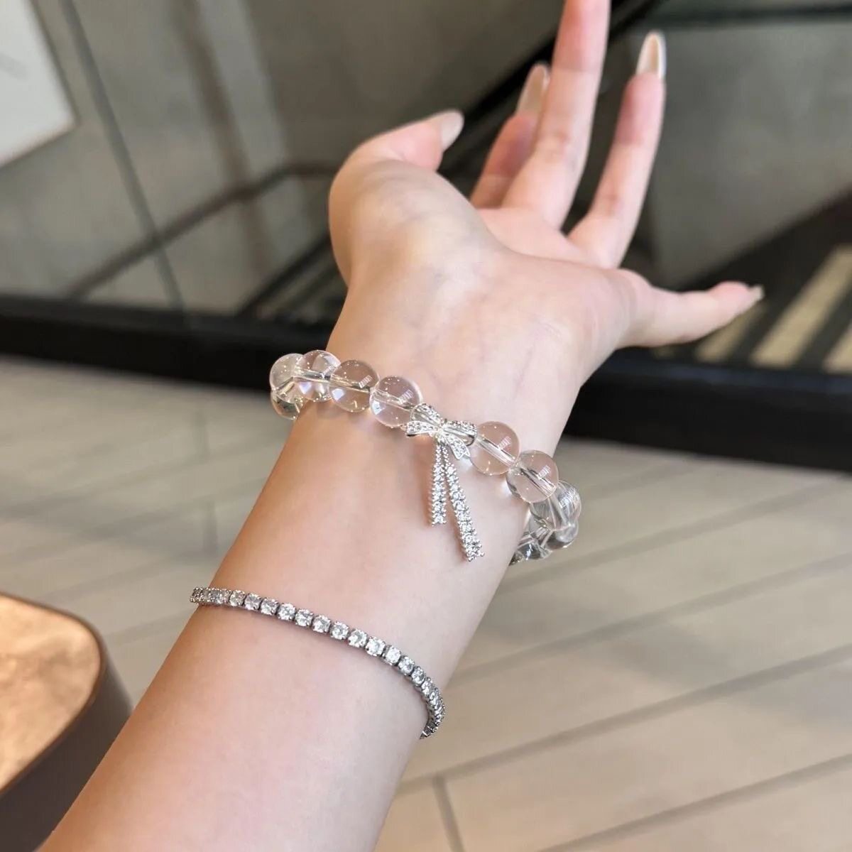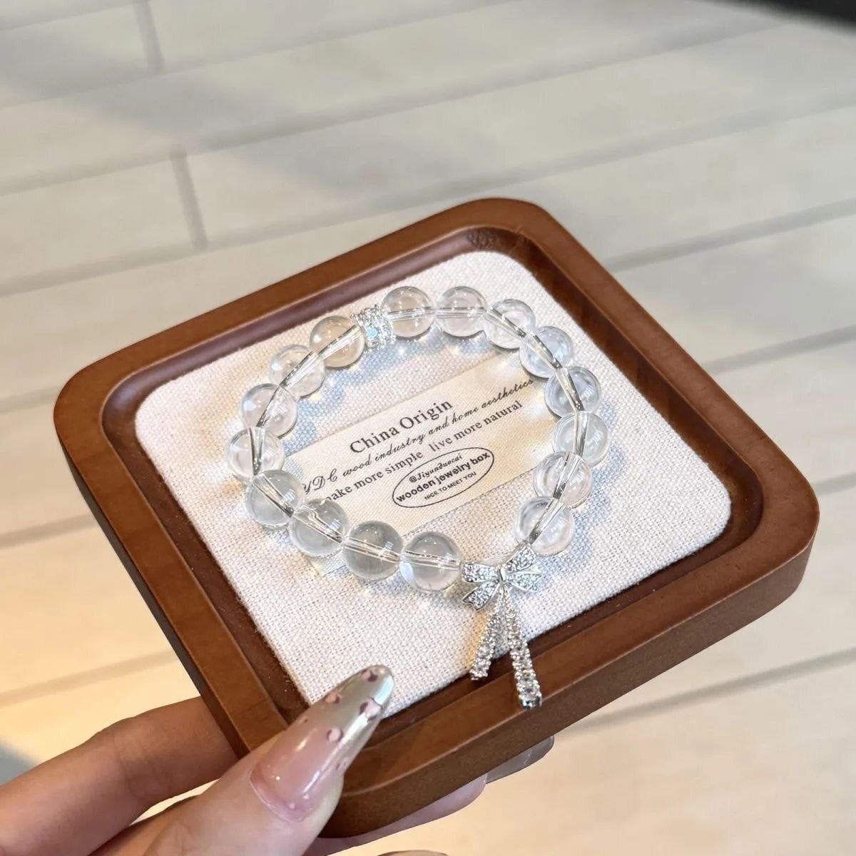 轻奢冰透感10mm白色串珠蝴蝶结飘带手串女冰凉甜美手链送女友礼物