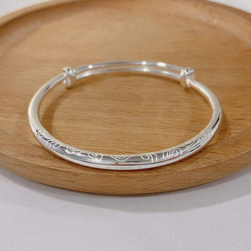 祥云9999纯银手镯足银女亲子款中童原创银饰饰品时尚网红轻奢年轻