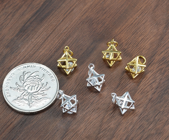 S925纯银饰品配件 带钻锆石立体六角星吊坠 手工DIY手链项链挂件
