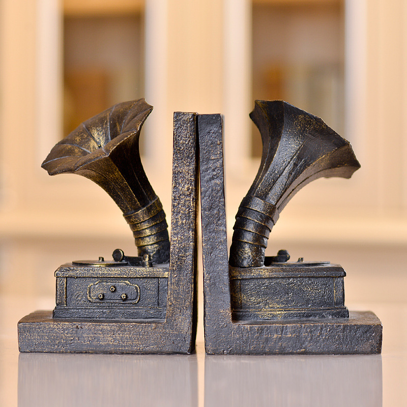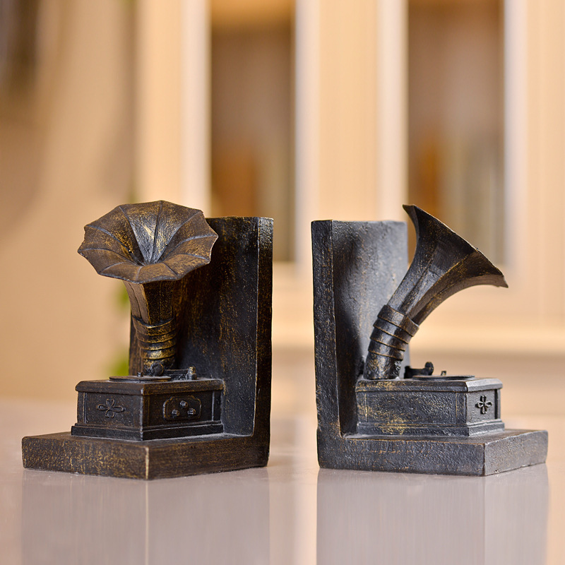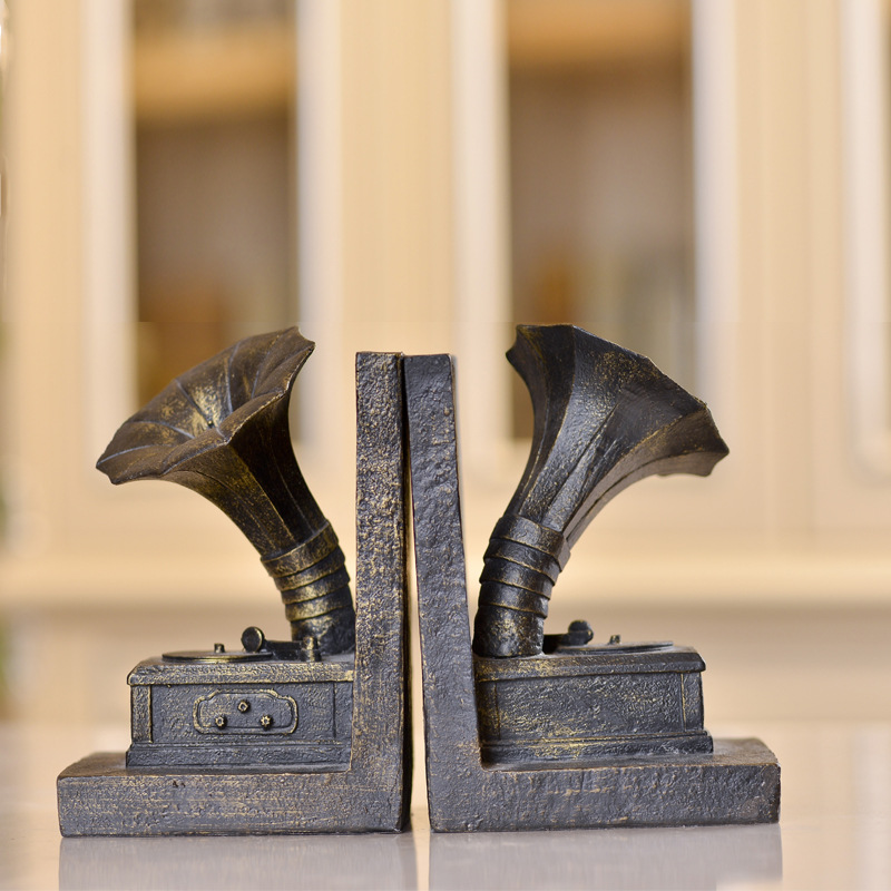欧式复古留声机摆件模型书档造型软装工艺品装饰书档创意家居摆件
