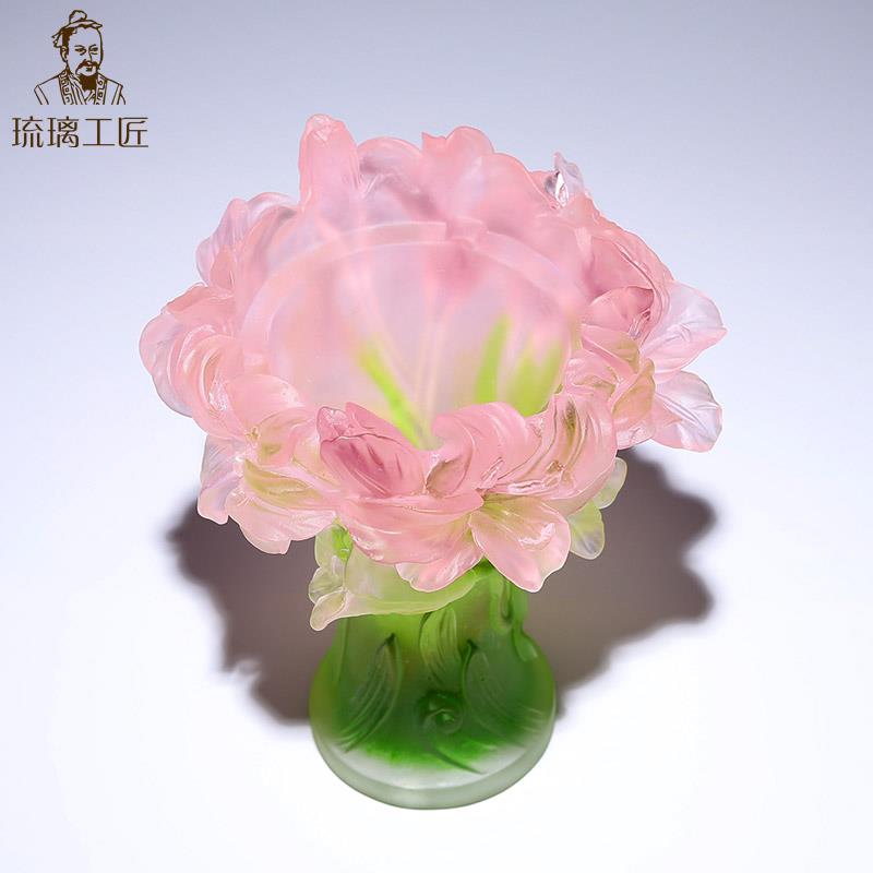 创意琉璃百合花瓶摆件水晶客厅工艺礼品摆饰搬家礼物乔迁新居礼品