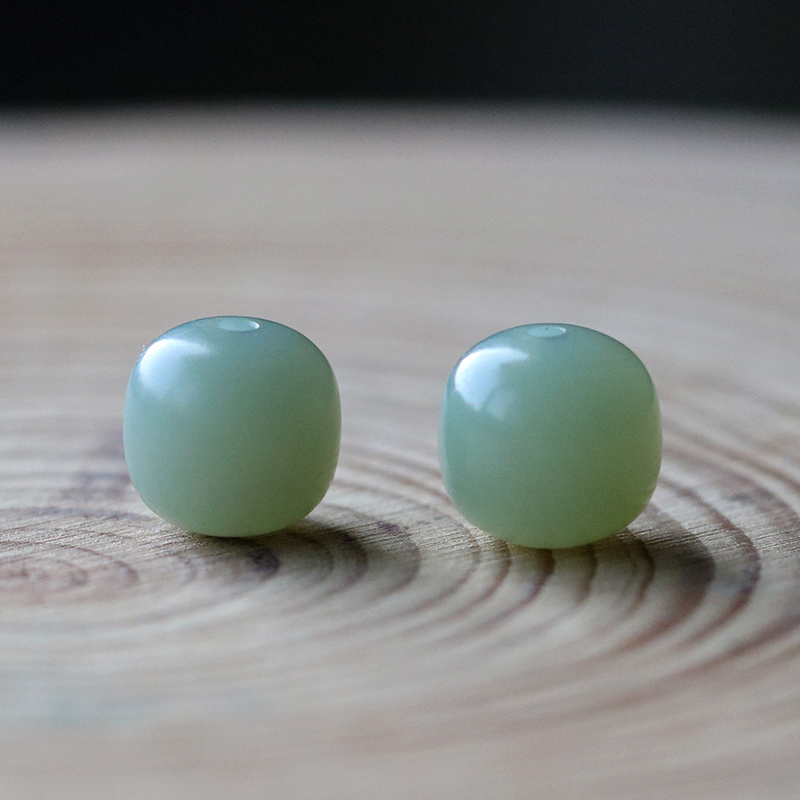 天然和田玉且末料老型珠散珠青白玉单珠玉石珠子桶珠鼓珠手串配珠