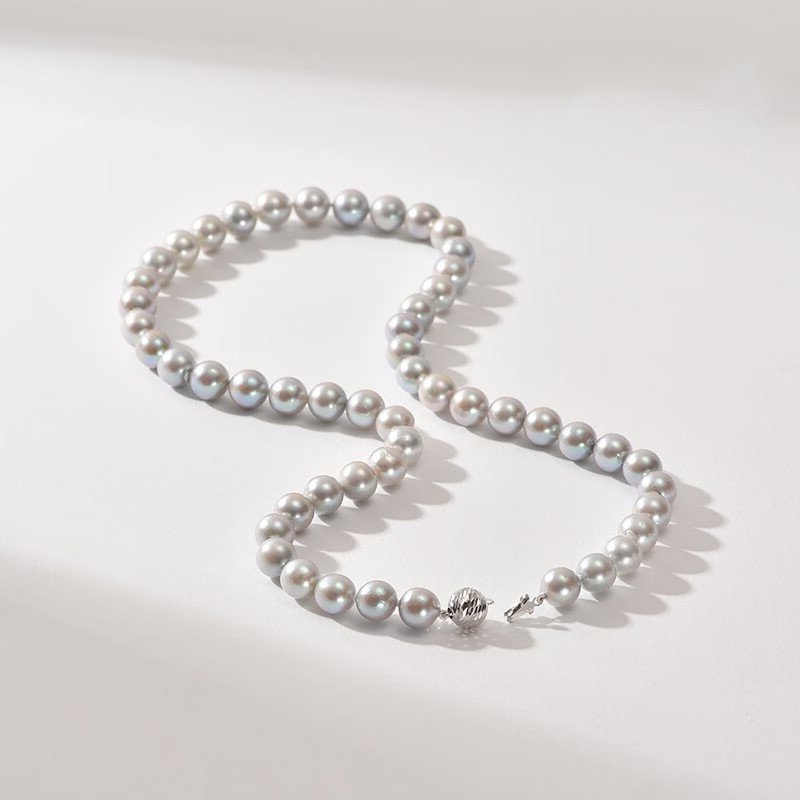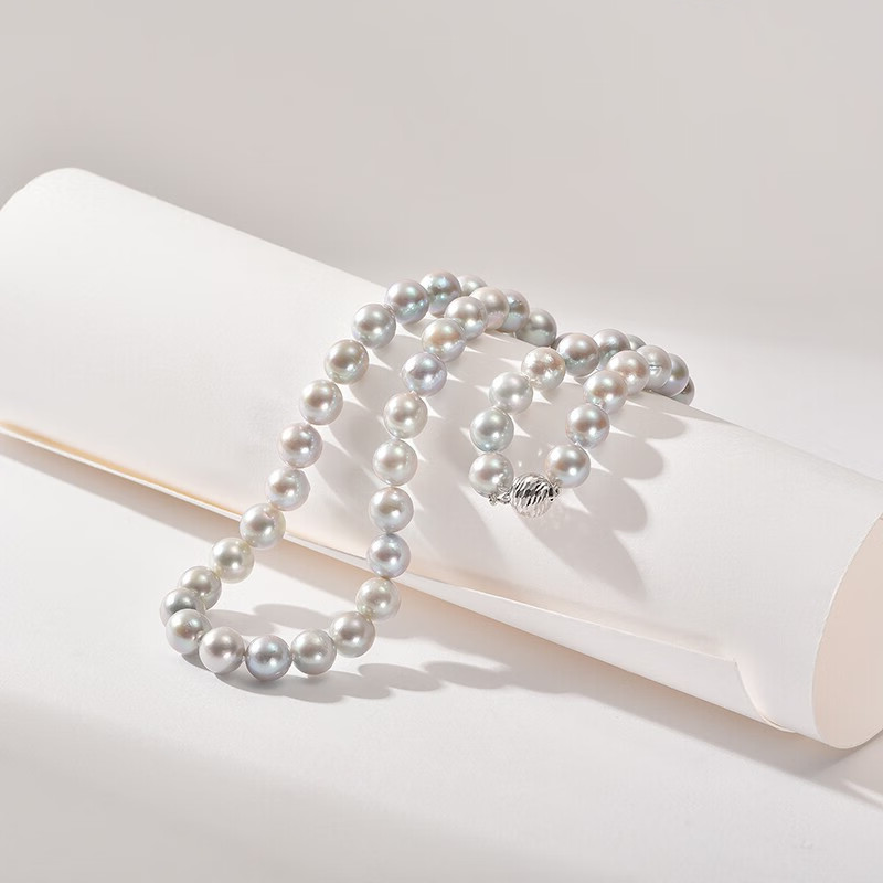 海水珍珠项链8-9mm灰色近圆形时尚项链配饰女生日礼物送女友