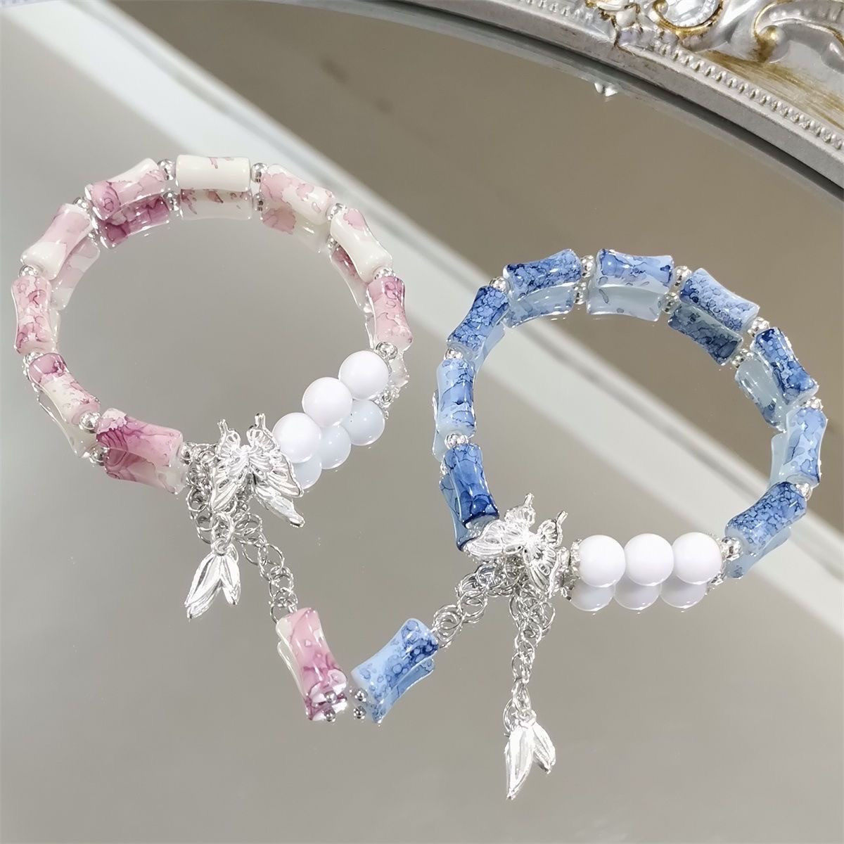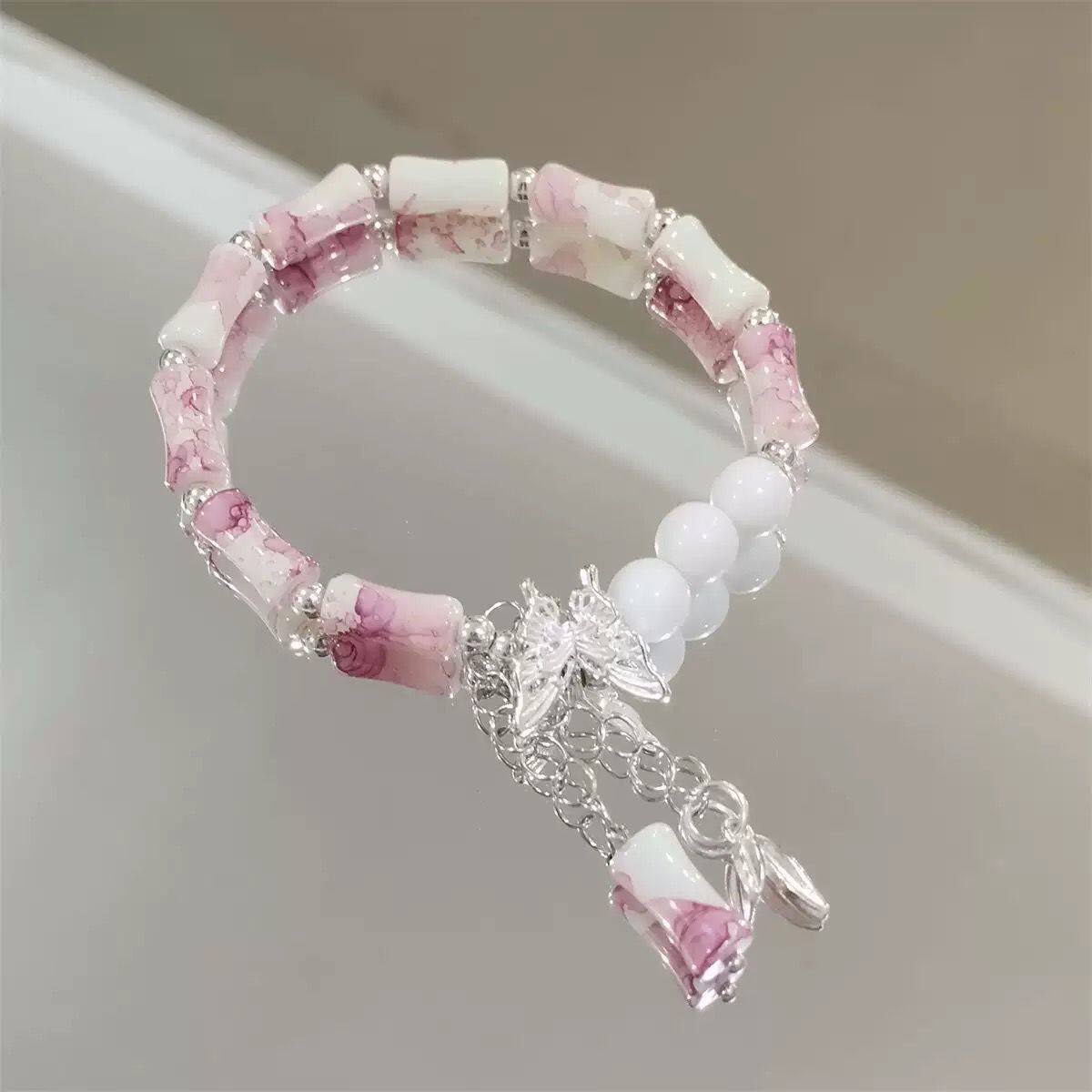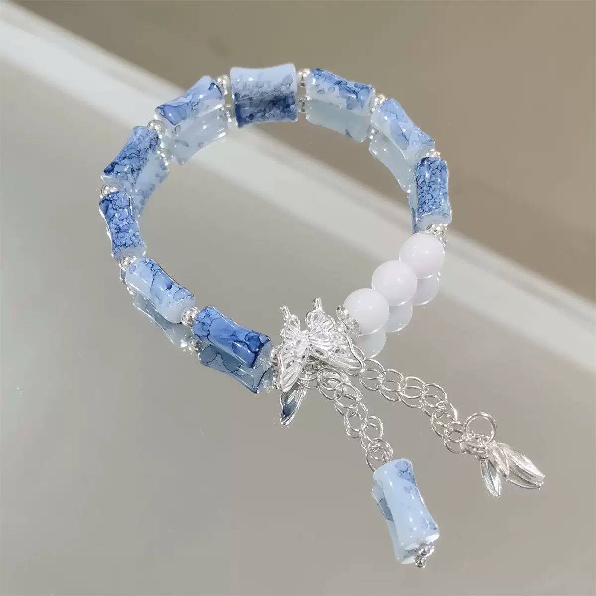 爆款中式竹节手链女小众设计感森系蝴蝶百搭学生闺蜜手串情侣手饰