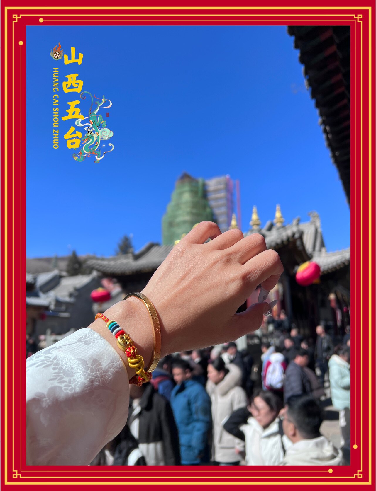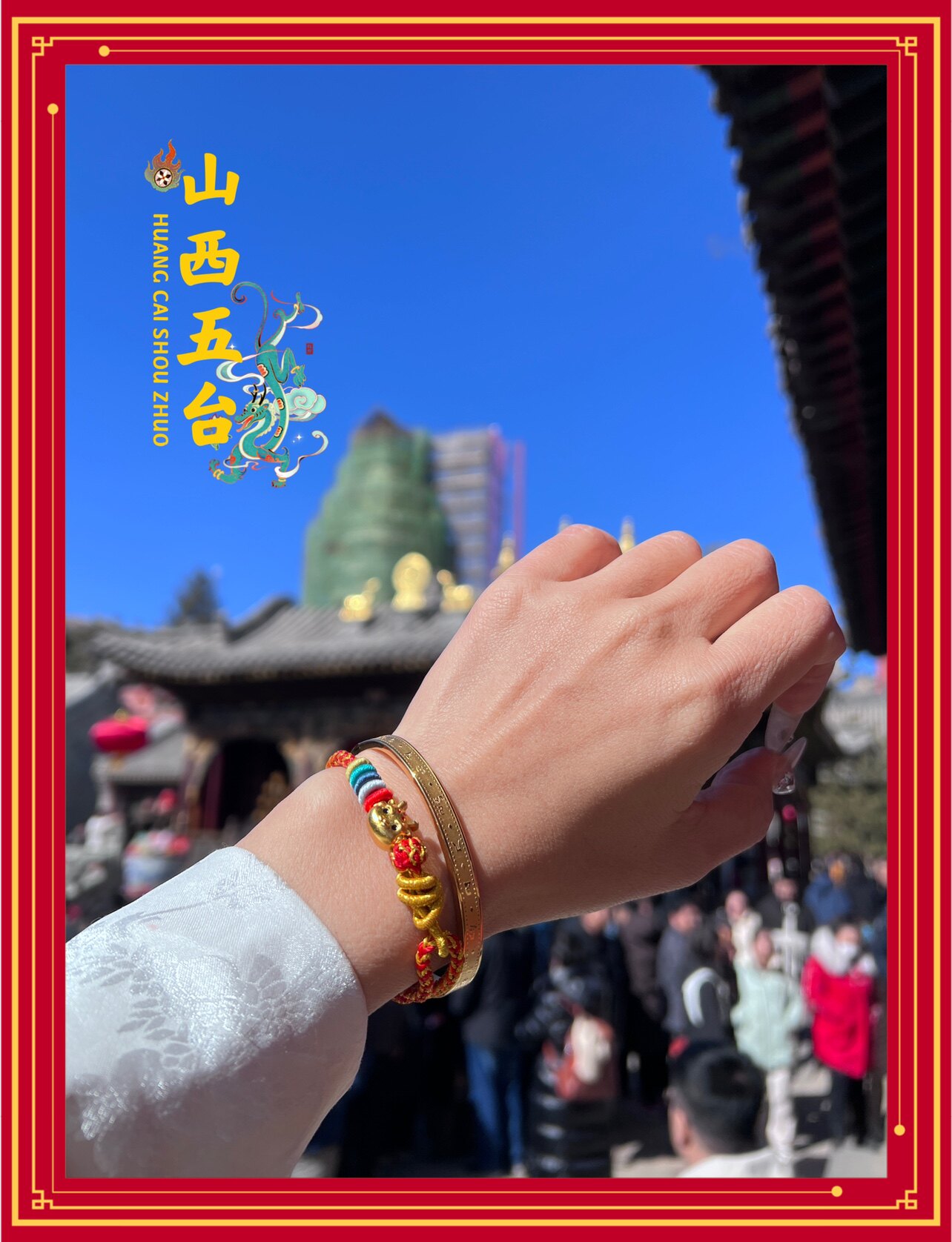 【山西五台】黄财神手镯 心经 情侣款平安起运 钛钢镀金 大小号