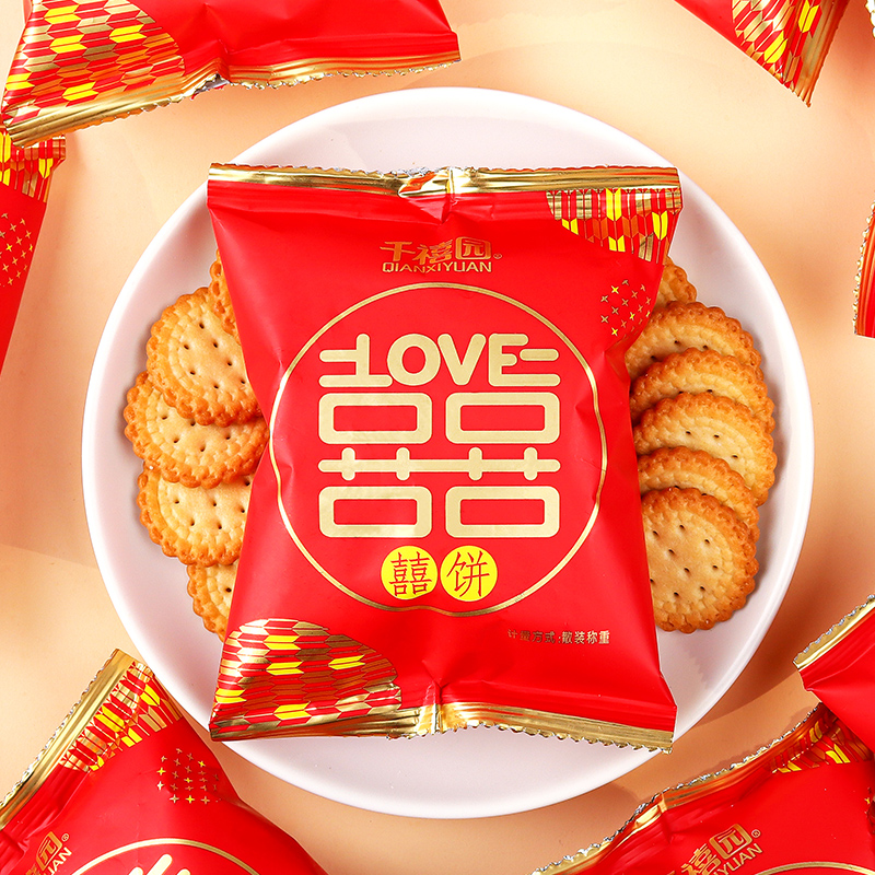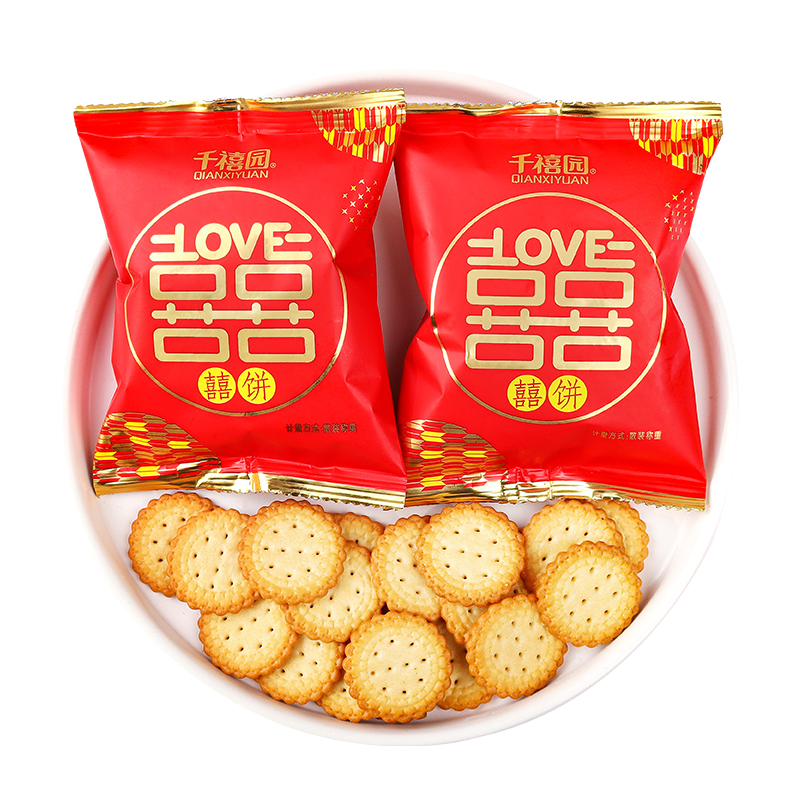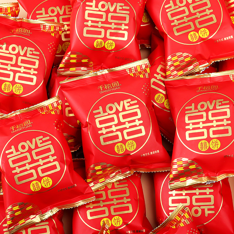 千禧园双喜饼喜字小圆饼曲奇饼干结婚喜糖喜饼散装批发婚庆食品