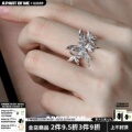 零下/925纯银小众中性高级感透明宝石开口戒指可调食指戒