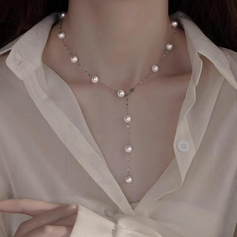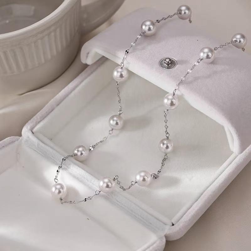 曼塔玫瑰白色珍珠项链女轻奢小众高级锁骨链夏天配裙子颈链不掉色