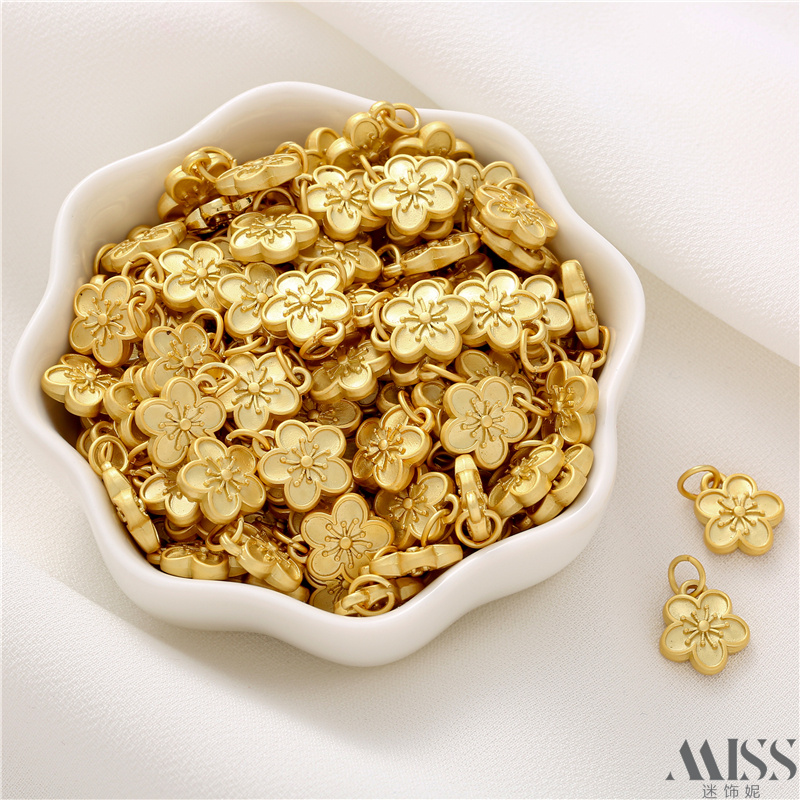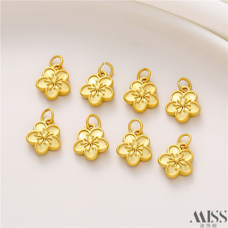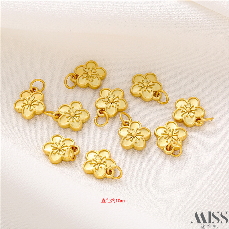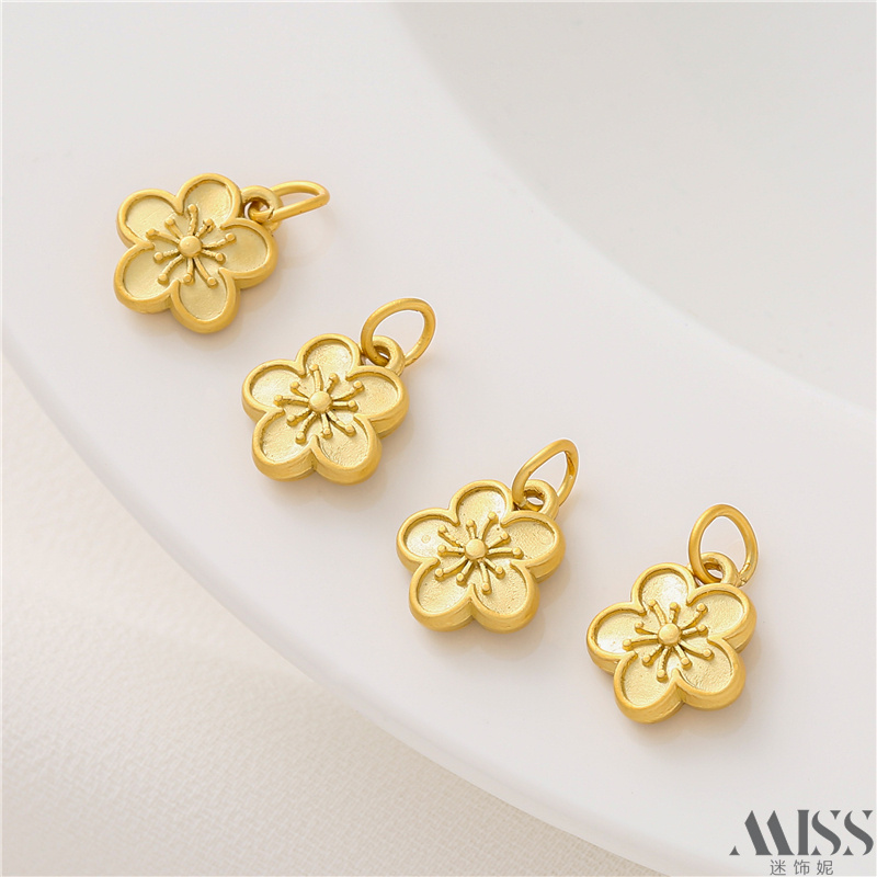 18K包金保色沙金哑光双面五叶花吊坠diy手工手链项链耳坠饰品配件