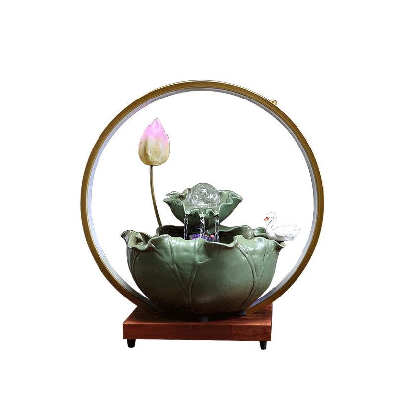 新中式造景鱼缸循环流水客厅玄关办公室装饰桌面摆件乔迁开业礼品