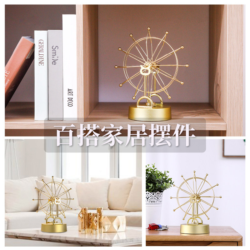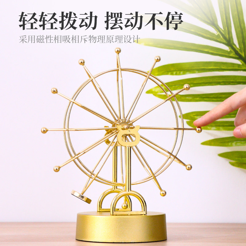 摩天轮牛顿摆永动仪物理摆件书房办公室客厅酒柜装饰品创意磁转轮