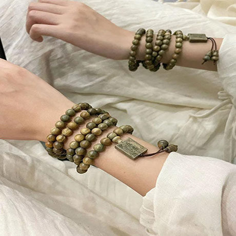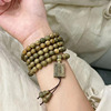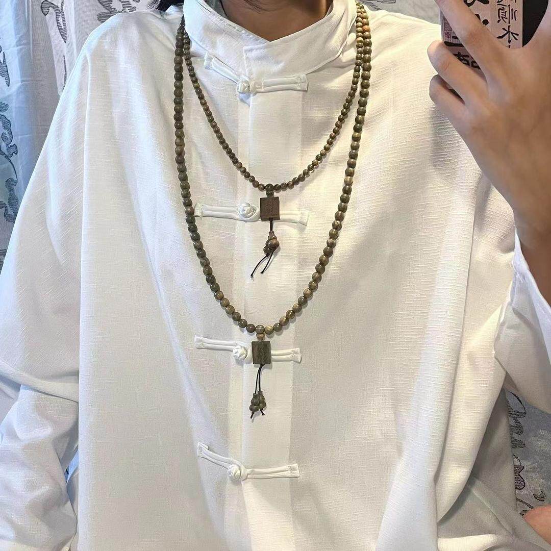 中式古风绿檀木手工雕刻108颗多圈手串文艺禅意文玩木质佛珠手持