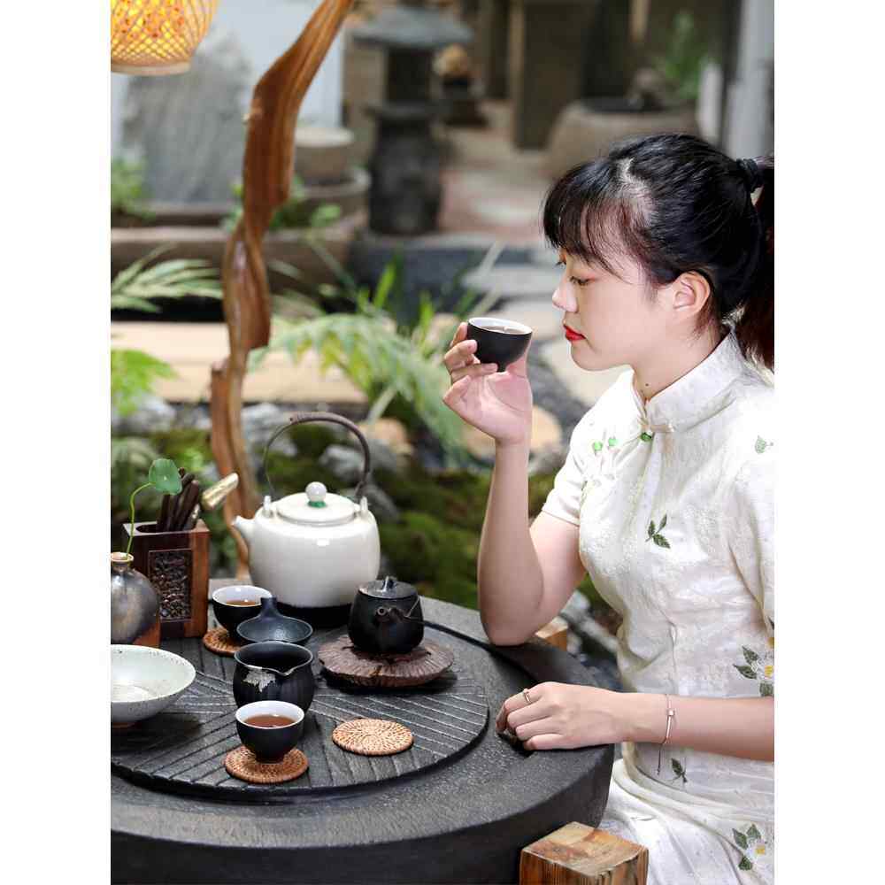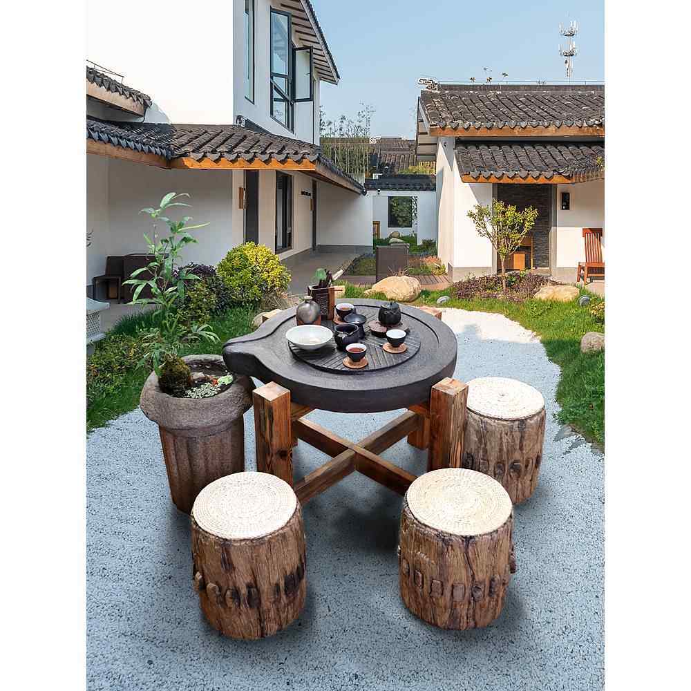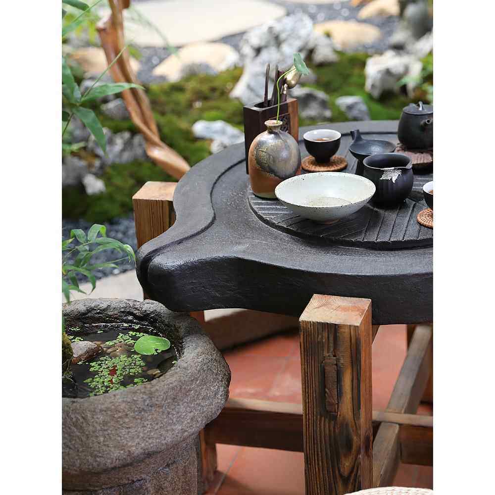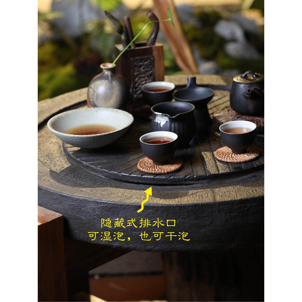 创意磨盘茶台泡茶桌新中式禅意休闲功夫茶桌椅组合户外阳台家用桌