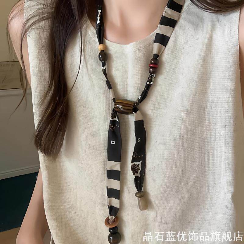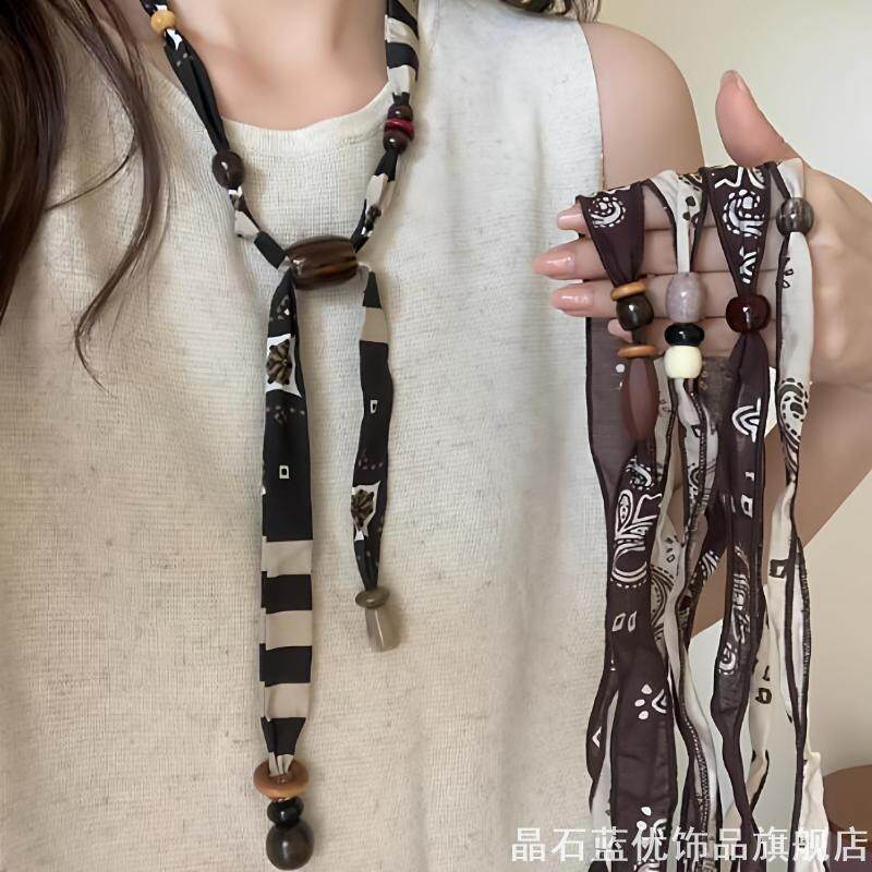 美拉德印花丝巾项链女2025新款爆款个性毛衣链小众设计感配饰