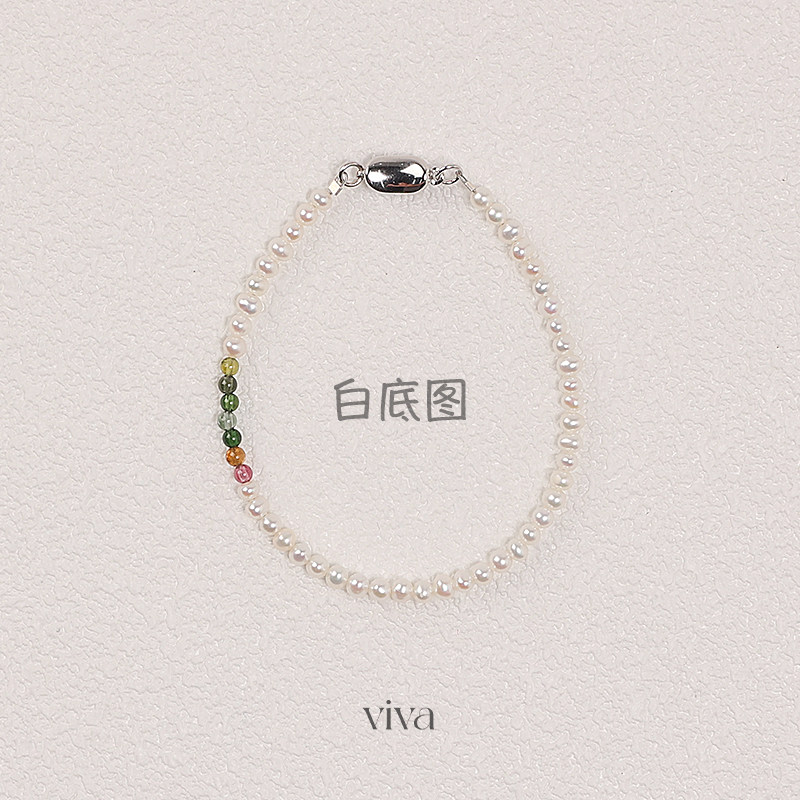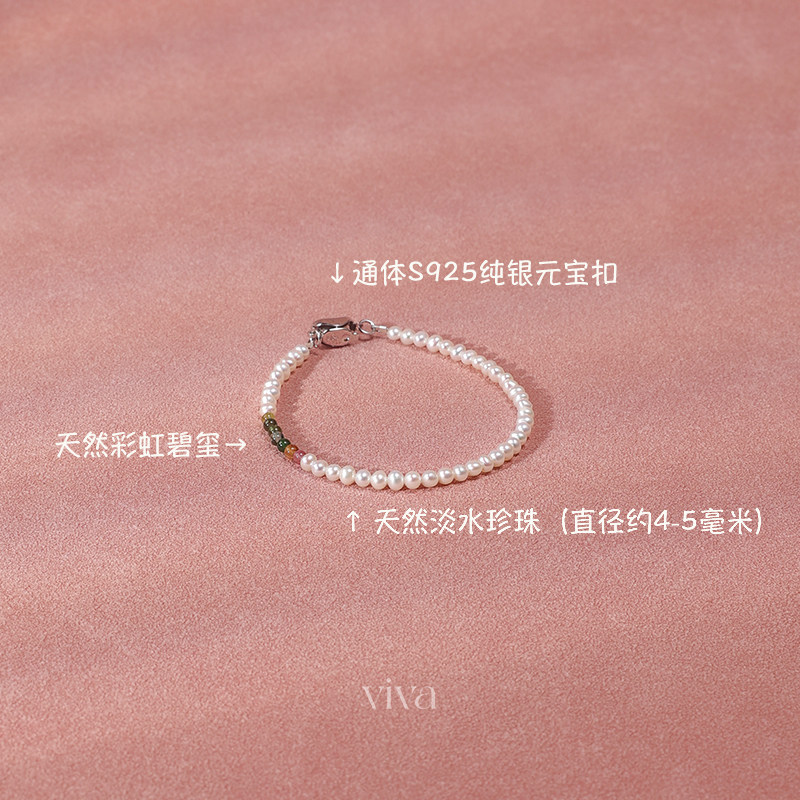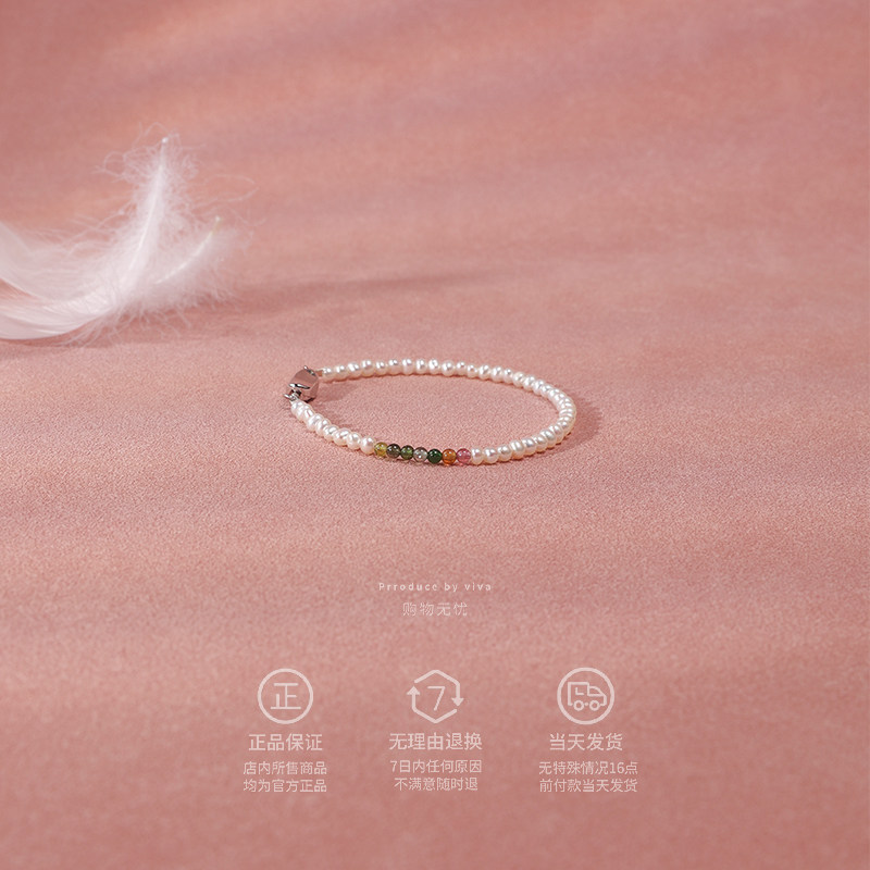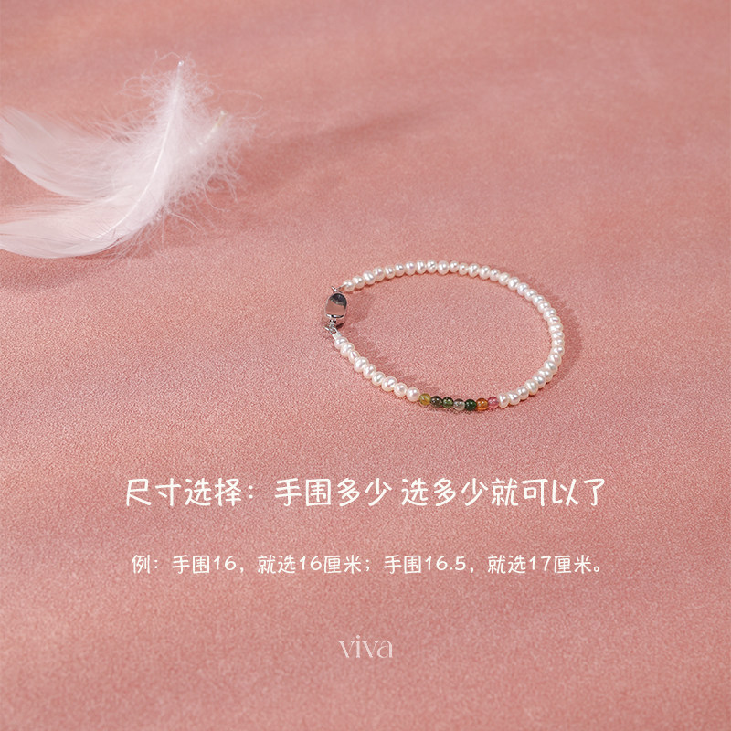 天然淡水珍珠手链女款正品新款爆款细款小米珠碧玺手串S925纯银